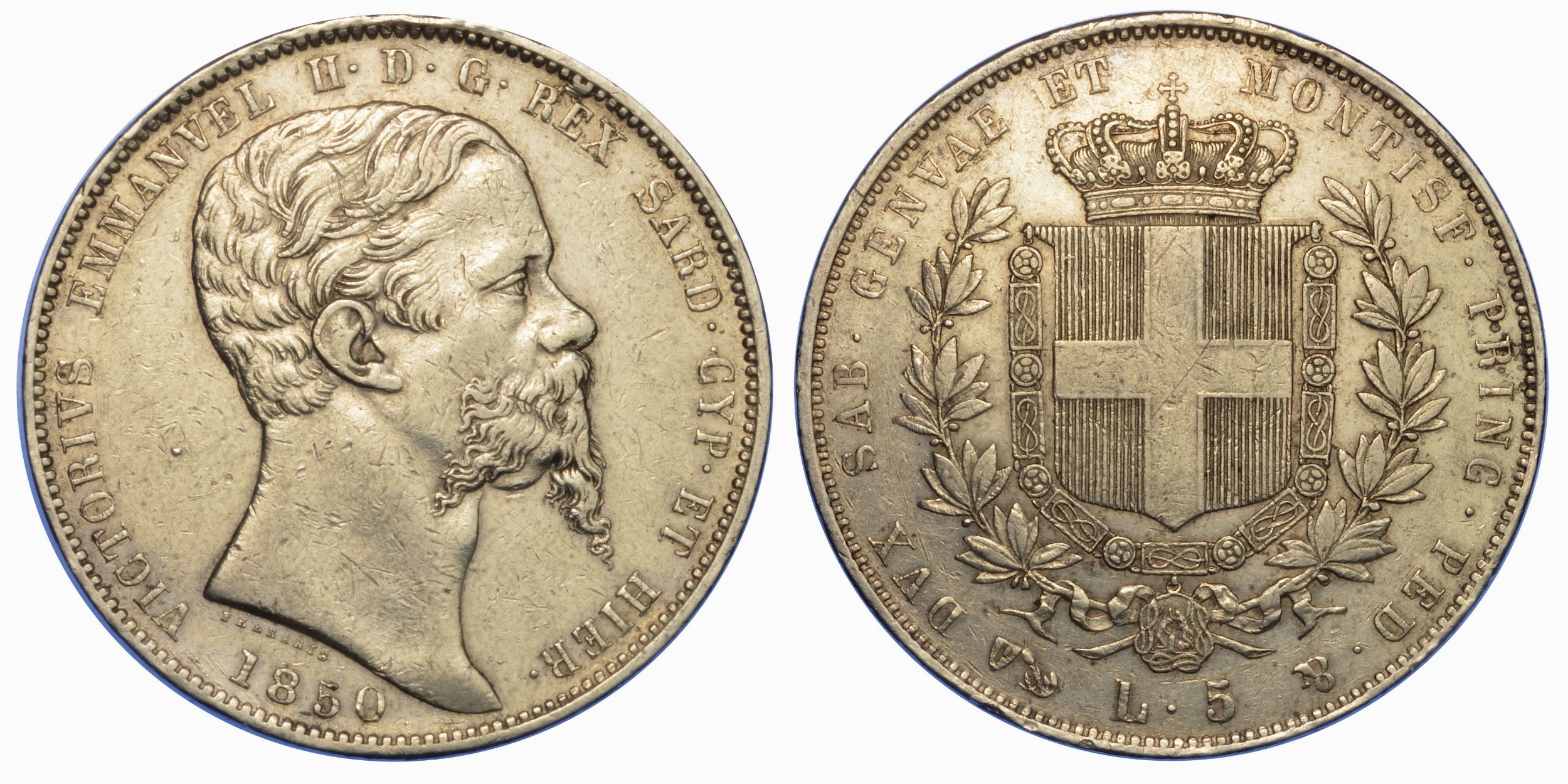 REGNO DI SARDEGNA. VITTORIO EMANUELE II DI SAVOIA, 1849-1861. 5 Lire 1850. Genov [..]