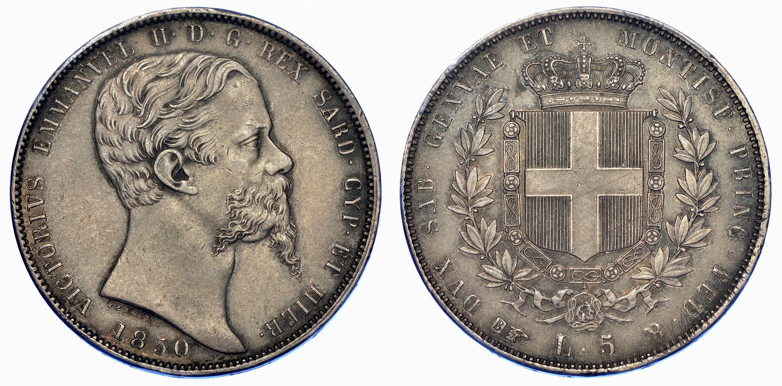 REGNO DI SARDEGNA. VITTORIO EMANUELE II DI SAVOIA, 1849-1861. 5 Lire 1850. Torin [..]
