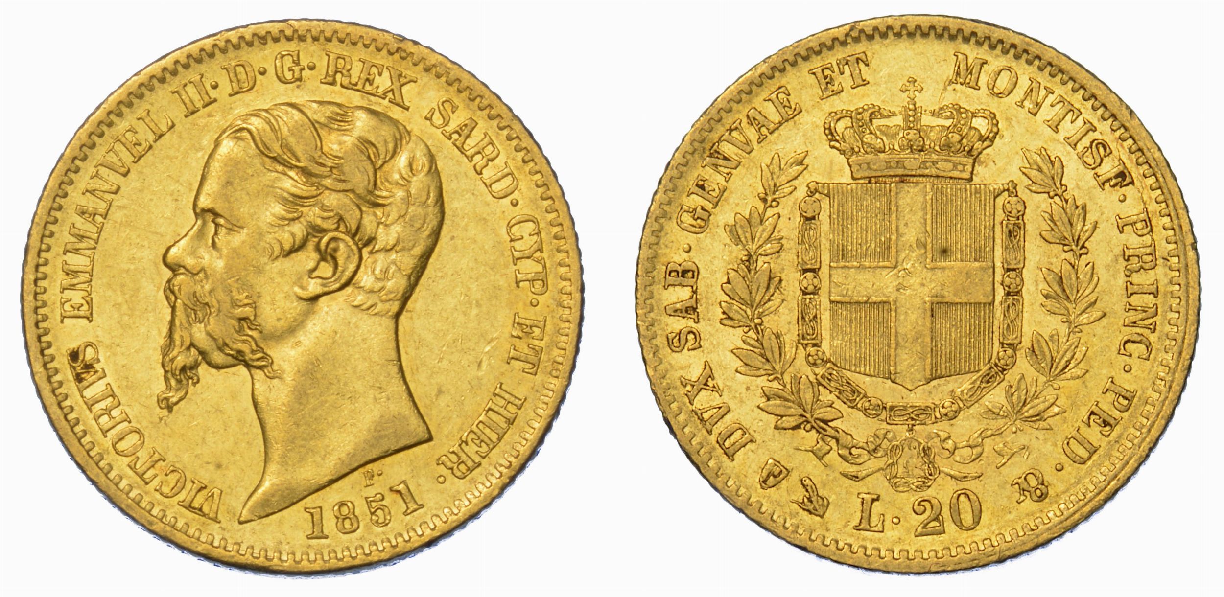 REGNO DI SARDEGNA. VITTORIO EMANUELE II DI SAVOIA, 1849-1861. 20 Lire 1851. Geno [..]