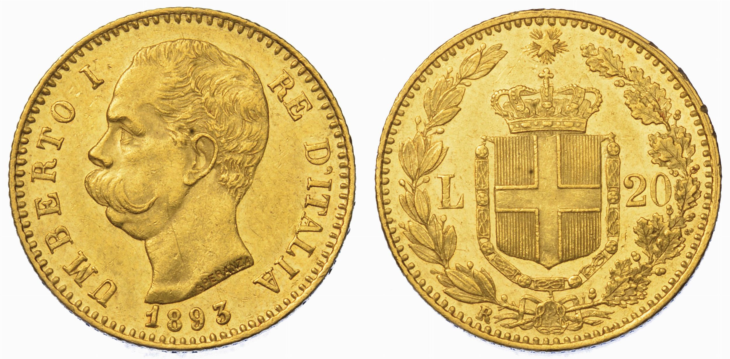 REGNO D'ITALIA. UMBERTO I DI SAVOIA, 1878-1900. 20 Lire 1893.
