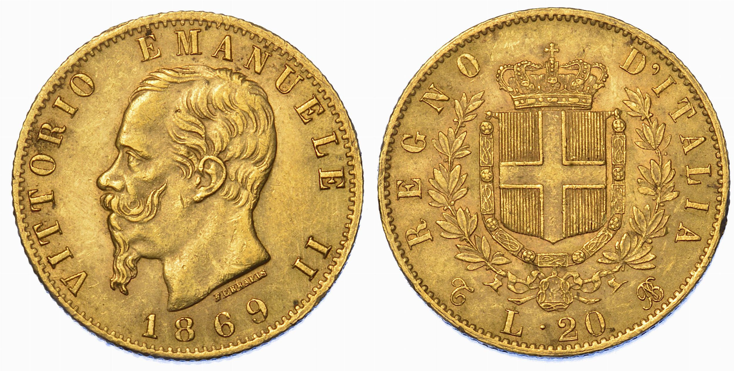 REGNO D'ITALIA. VITTORIO EMANUELE II DI SAVOIA, 1861-1878. 20 Lire 1869. Torino.