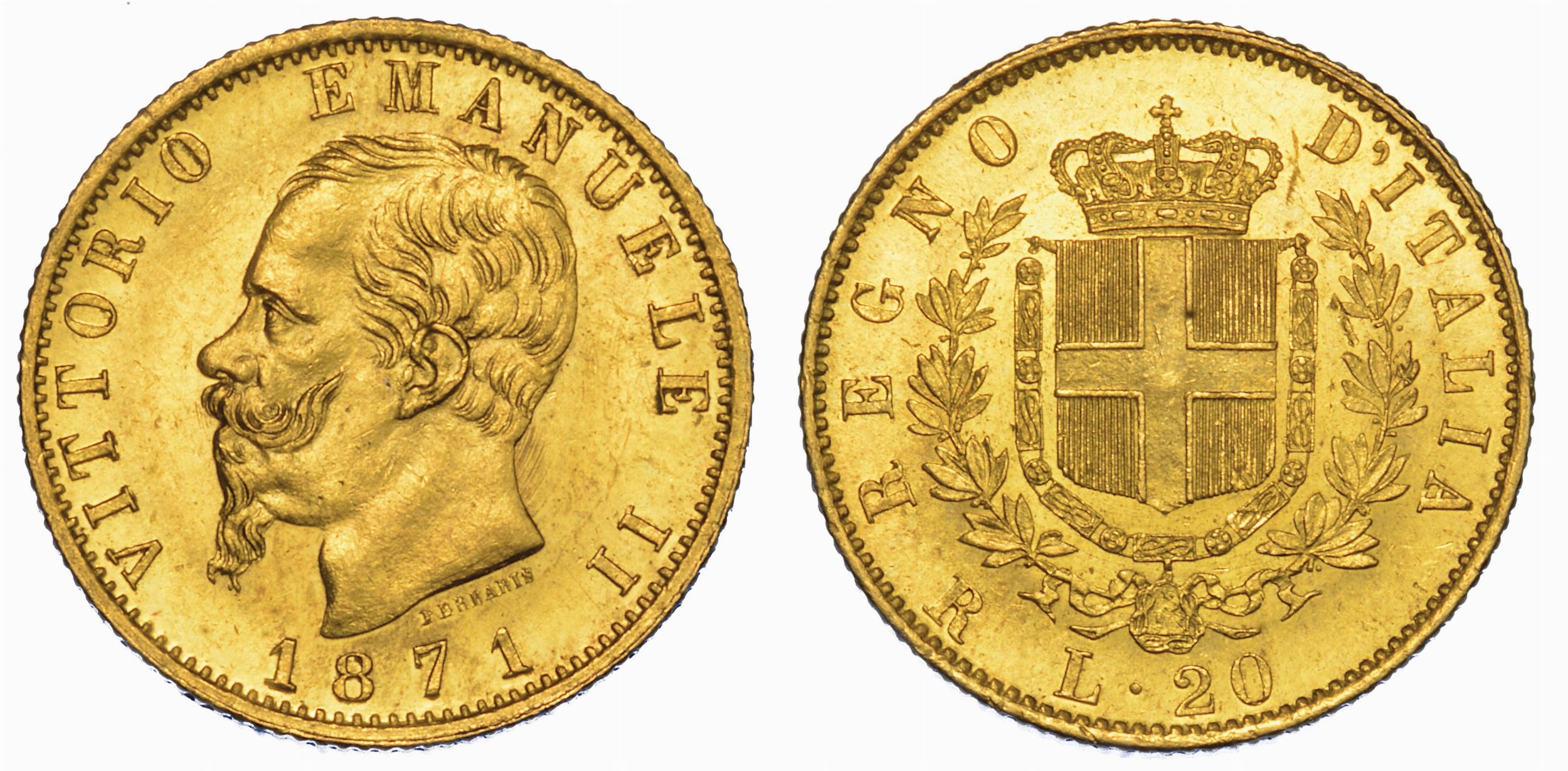 REGNO D'ITALIA. VITTORIO EMANUELE II DI SAVOIA, 1861-1878. 20 Lire 1871. Roma.