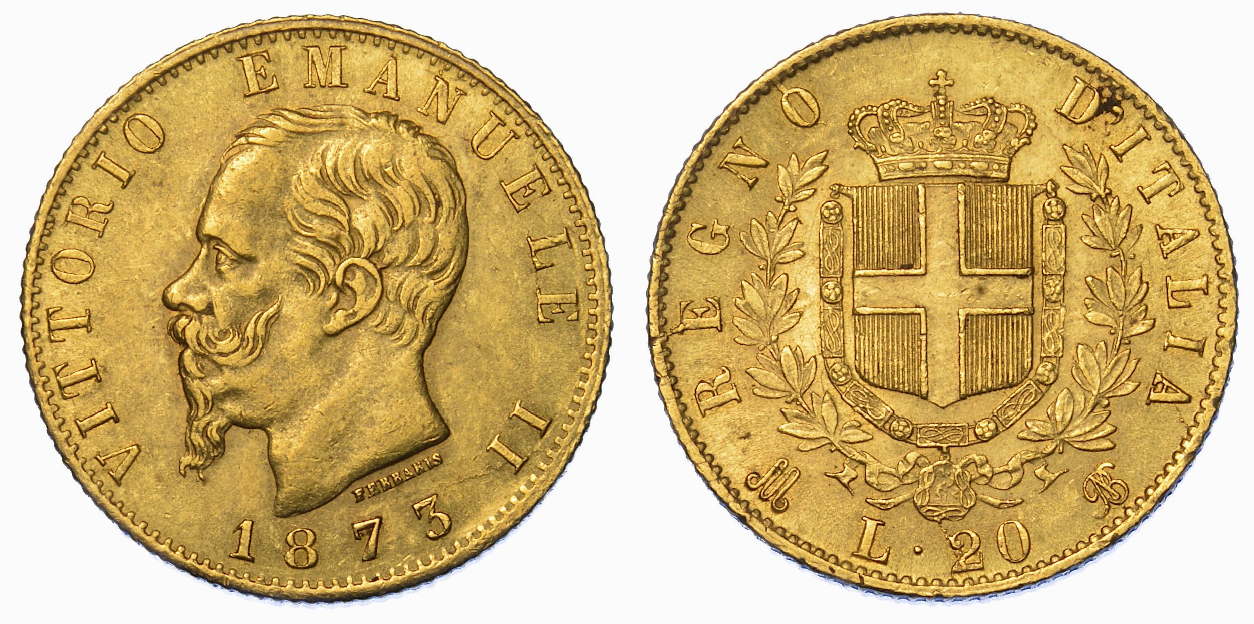REGNO D'ITALIA. VITTORIO EMANUELE II DI SAVOIA, 1861-1878. 20 Lire 1873. Milano.