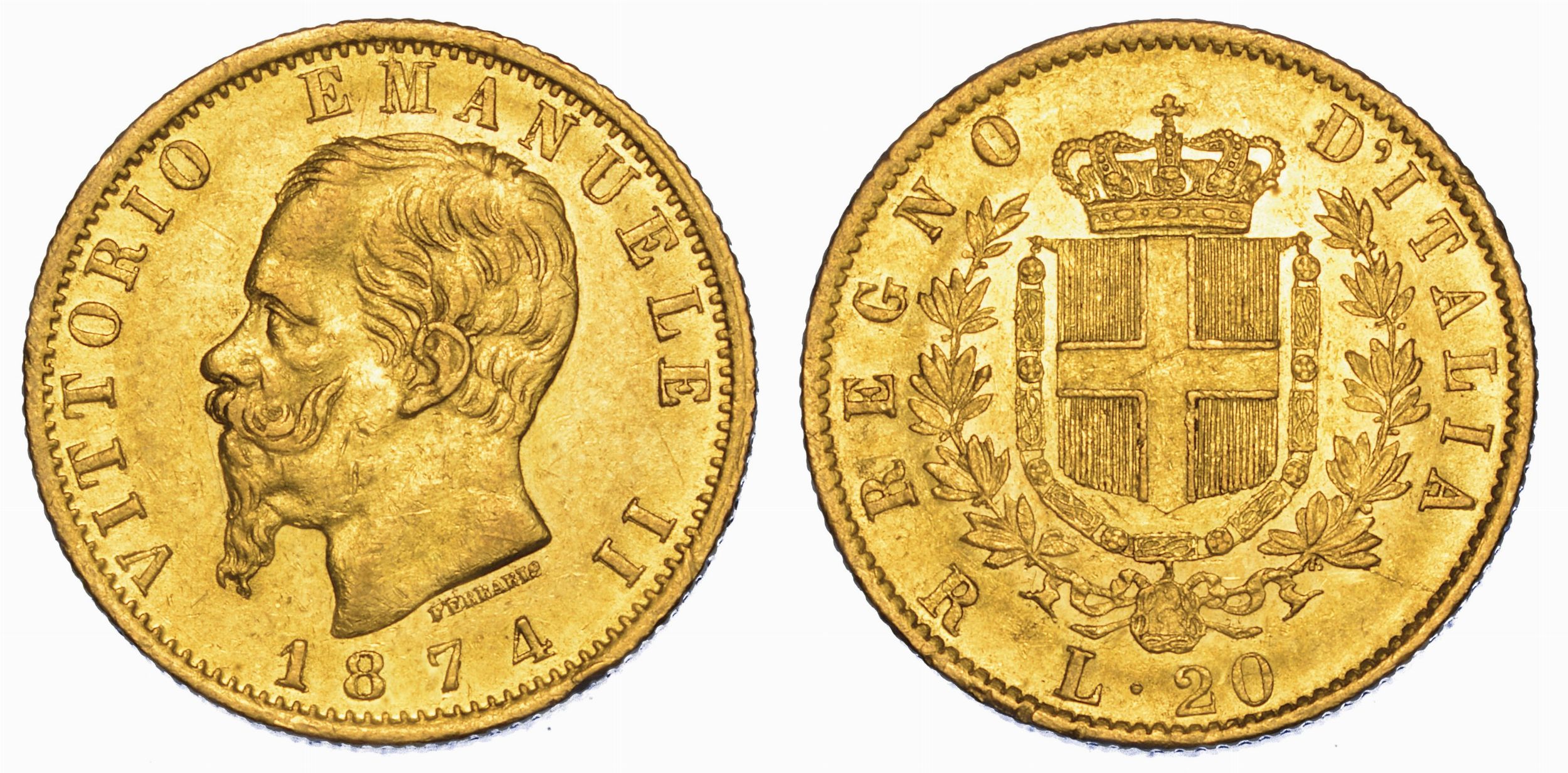 REGNO D’ITALIA. VITTORIO EMANUELE II DI SAVOIA, 1861-1878. 20 Lire 1874. Roma.
