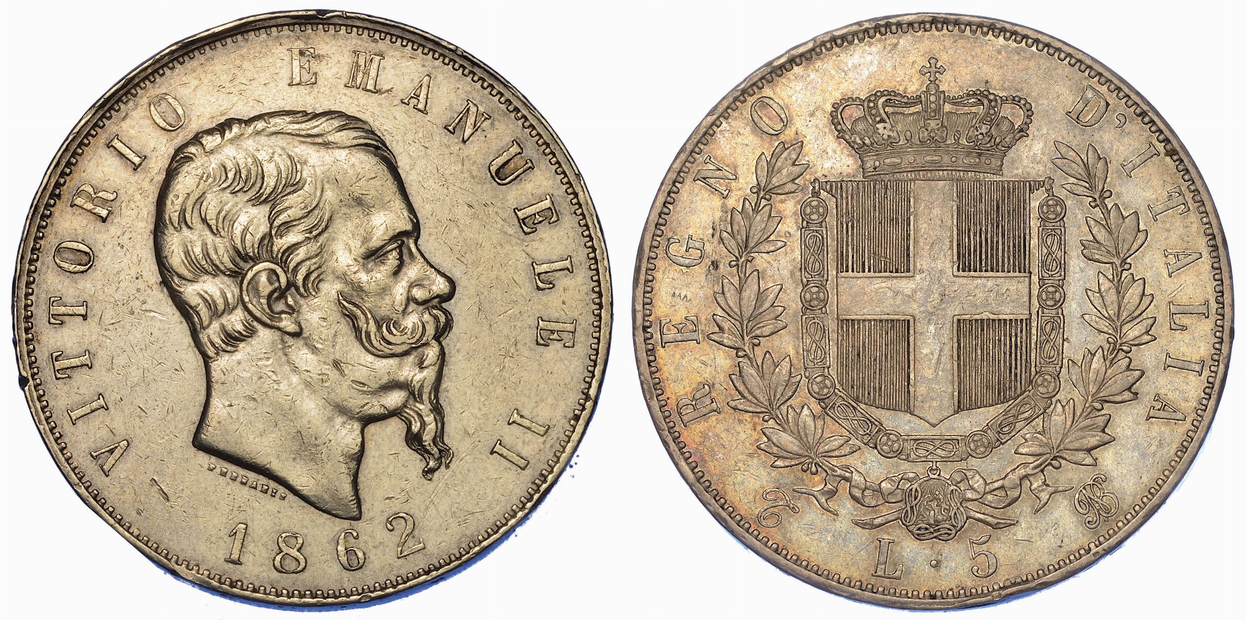 REGNO D'ITALIA. VITTORIO EMANUELE II DI SAVOIA, 1861-1878. 5 Lire 1862. Torino.