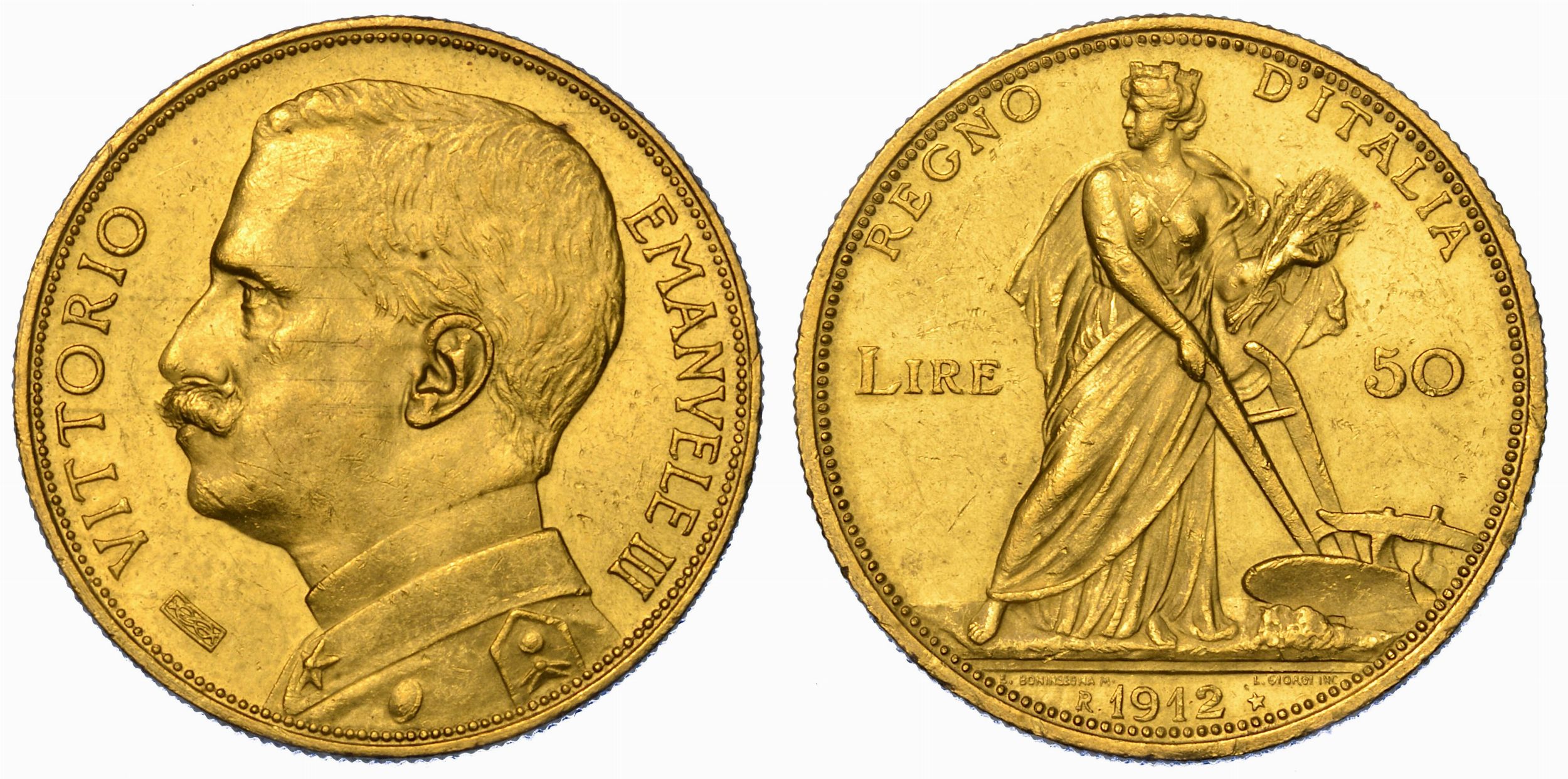 REGNO D'ITALIA. VITTORIO EMANUELE III DI SAVOIA, 1900-1946. 50 Lire 1912. Aratri [..]