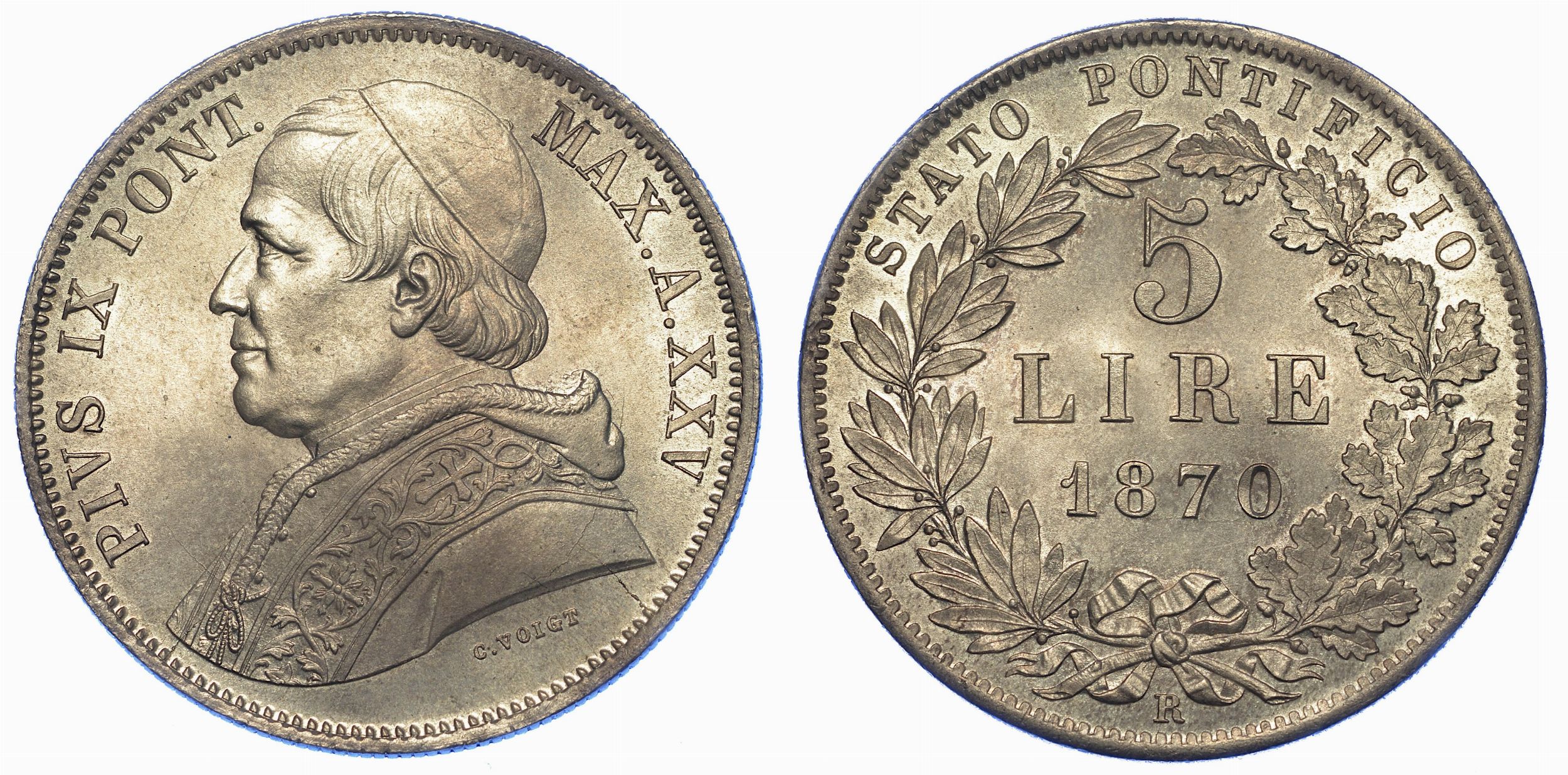 ROMA. PIO IX, 1846-1878. 5 Lire 1870/A. XXV.