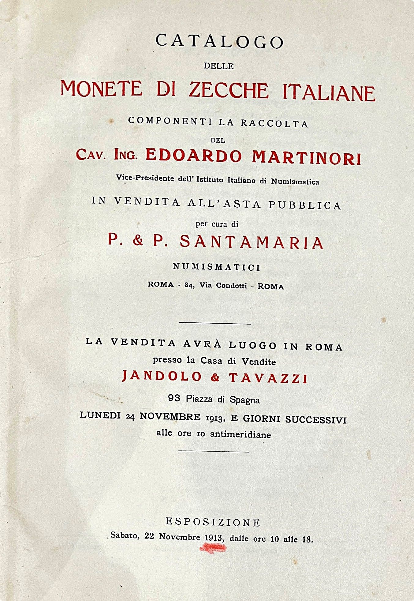 SANTAMARIA, P. & P. COLLEZIONE MARTINORI. MONETE DI ZECCHE ITALIANE.
