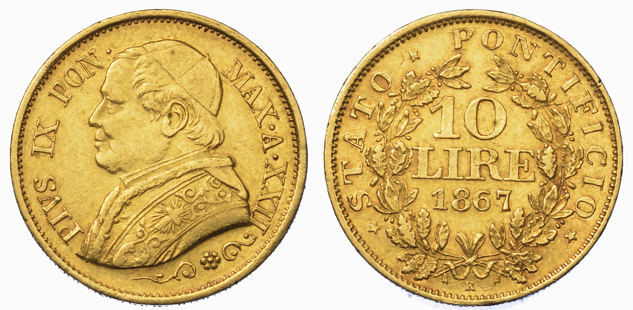STATO PONTIFICIO. PIO IX, 1846-1878. 10 Lire 1867/A. XXII.