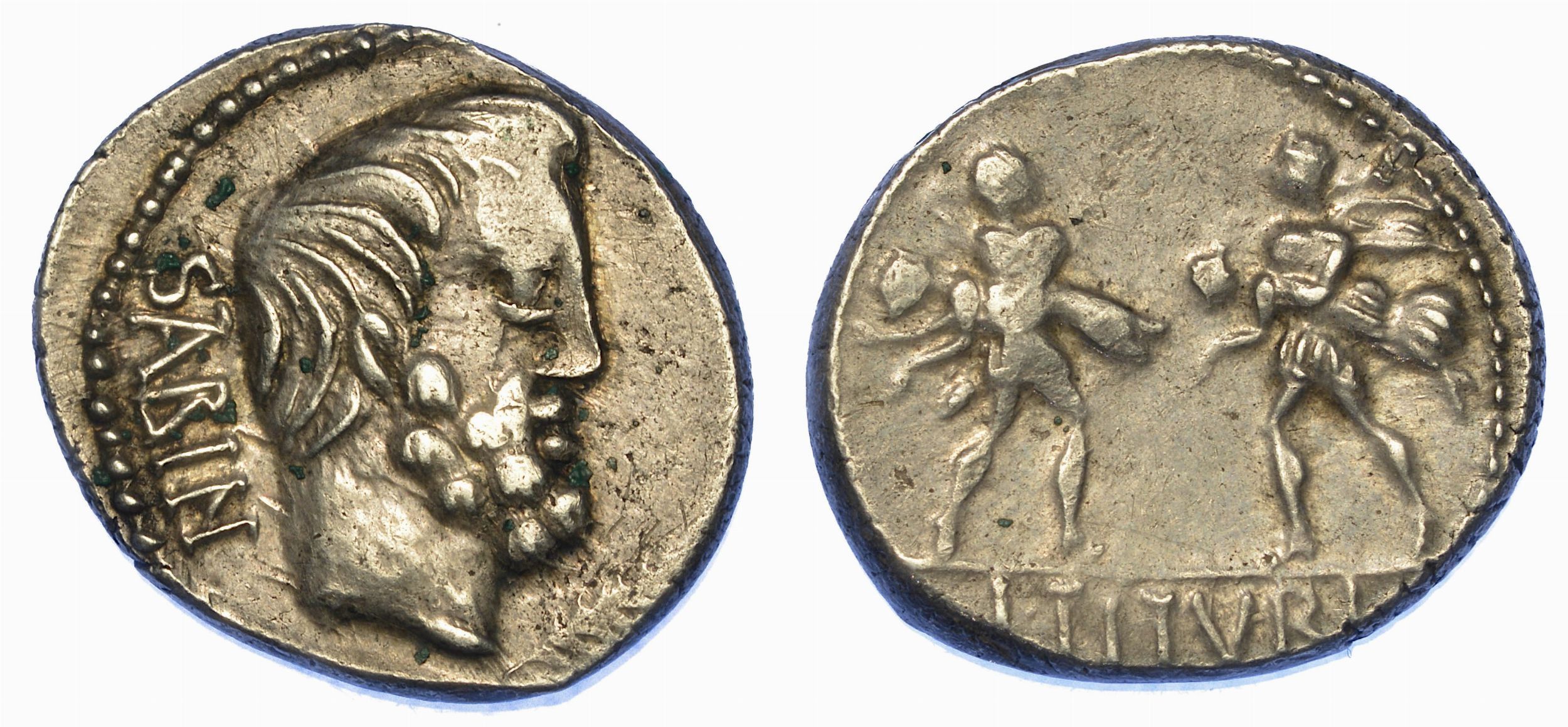 TITURIA. L. Titurius L. f. Sabinus, 89 a.C. Denario.
