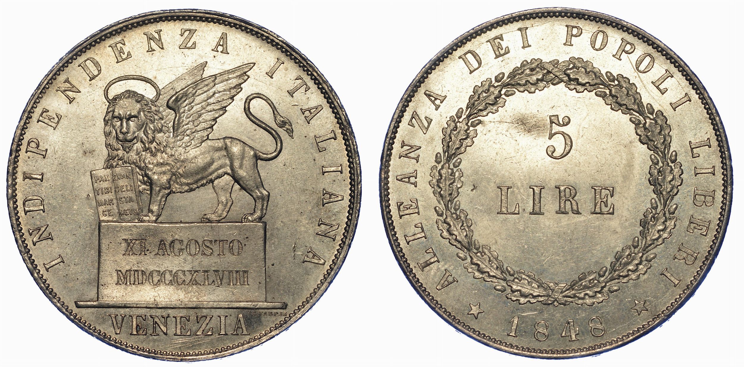 VENEZIA. GOVERNO PROVVISORIO DI VENEZIA, 1848-1849. 5 Lire 1848 (II tipo).