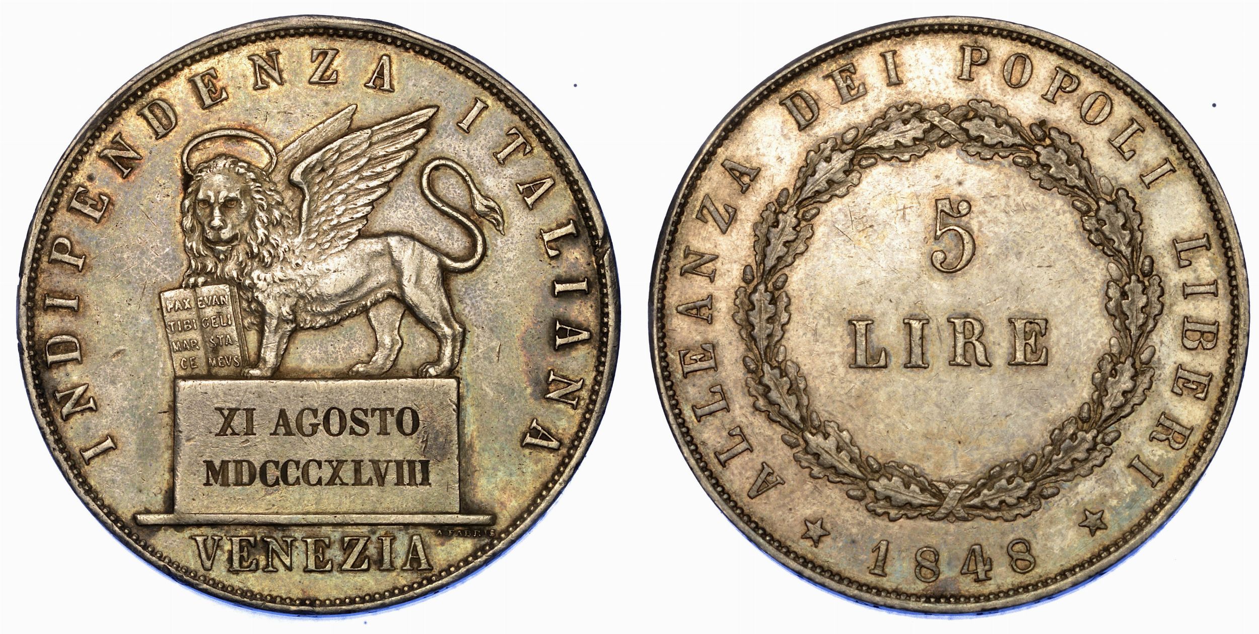VENEZIA. GOVERNO PROVVISORIO DI VENEZIA, 1848-1849. 5 Lire 1848 (II tipo).
