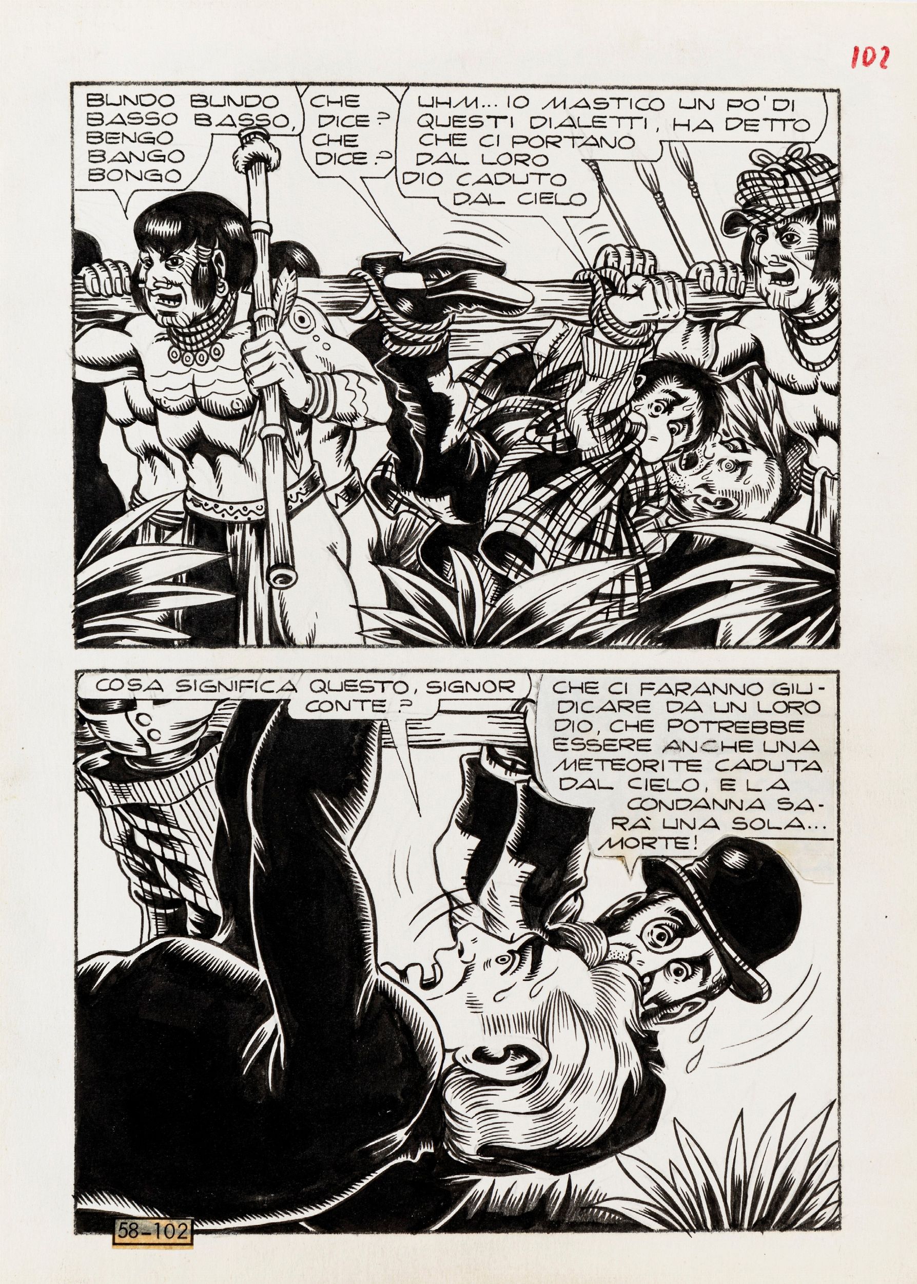 1974 Tavola originale realizzata da Magnus per Un tuffo nel vuoto, edita su Alan Ford n. 58 a pag. 102 dall'Editoriale Corno nel 1974.