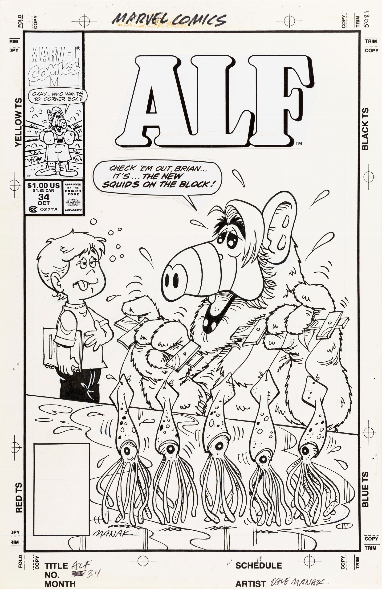 1990 Originale di copertina realizzato da Manak per ALF n. 34, edito dalla Marvel nel 1990. Firmato.