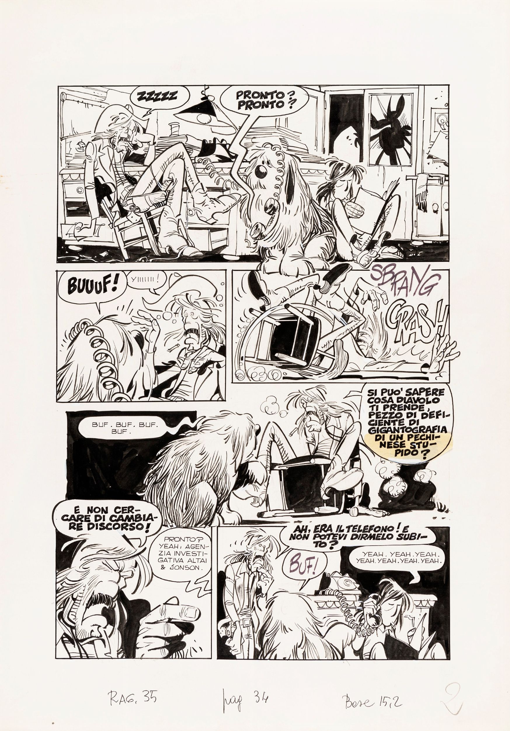1976 Tavola originale realizzata da Cavazzano per la pag. 2 di è scomparso il Maggiolino, episodio della mitica serie Altai & Jonson pubblicato sul CdR n. 35 nel 1976.