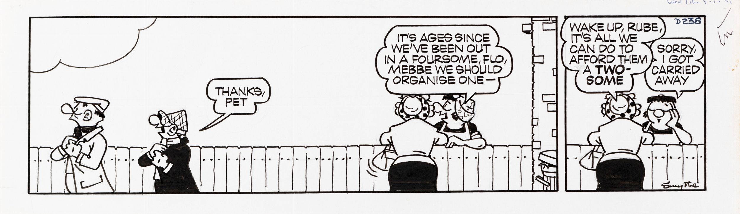 1995 Striscia giornaliera n. D 238 del 1995 per Andy Capp, realizzata da Smythe per le pagine del The Daily Mirror. Firmata.