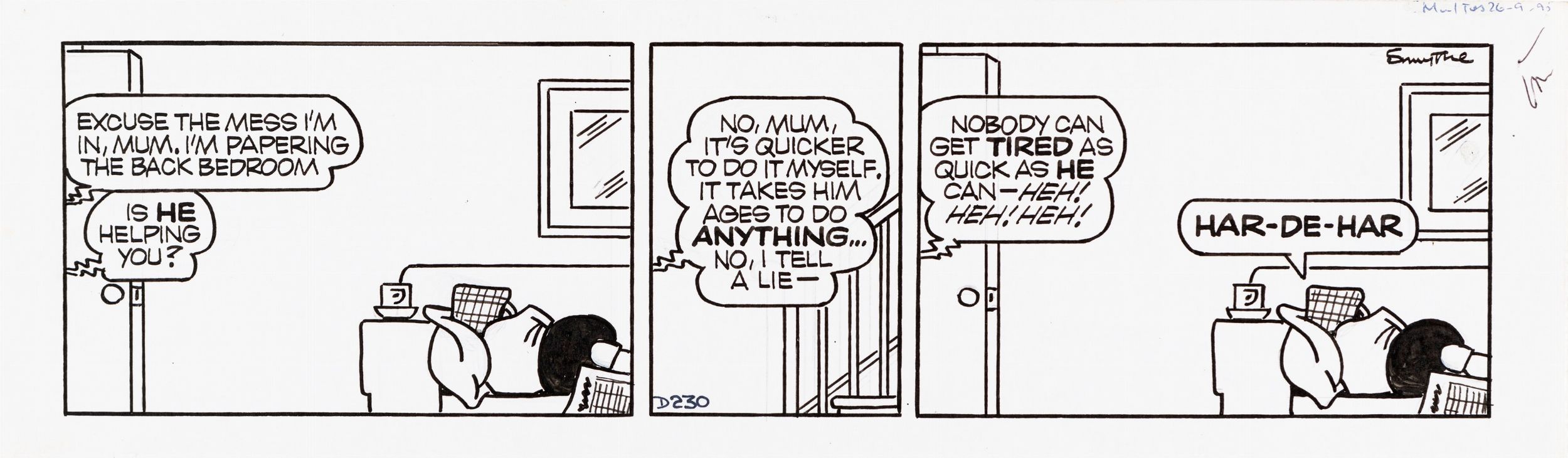 1995 Striscia giornaliera n. D 230 del 1995 per Andy Capp, realizzata da Smythe per le pagine del The Daily Mirror. Firmata.