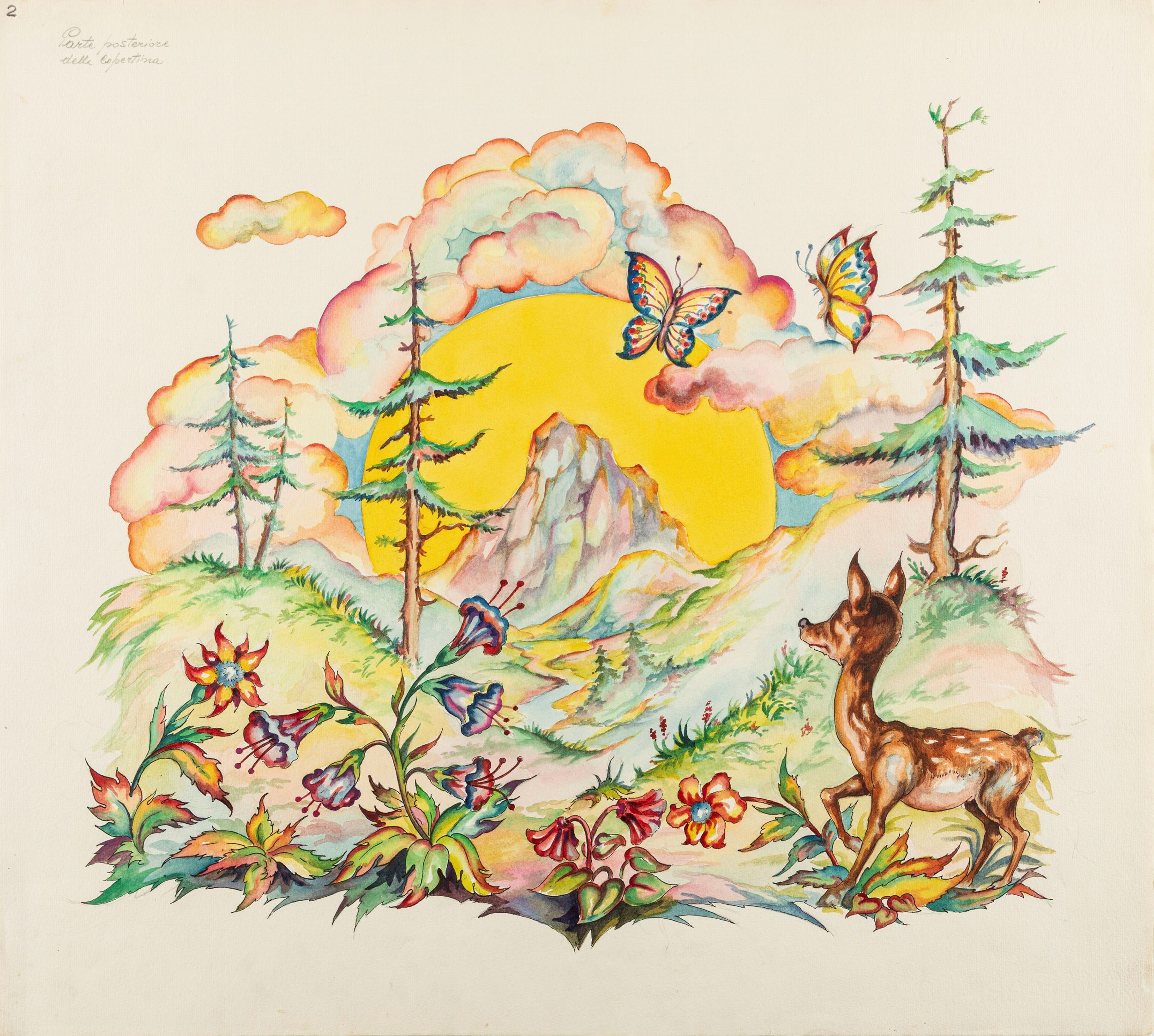 anni 50 Illustrazione originale realizzata da Lucchetti durante gli anni ’50 per la quarta di copertina delle Favole esopiane di Fedro.