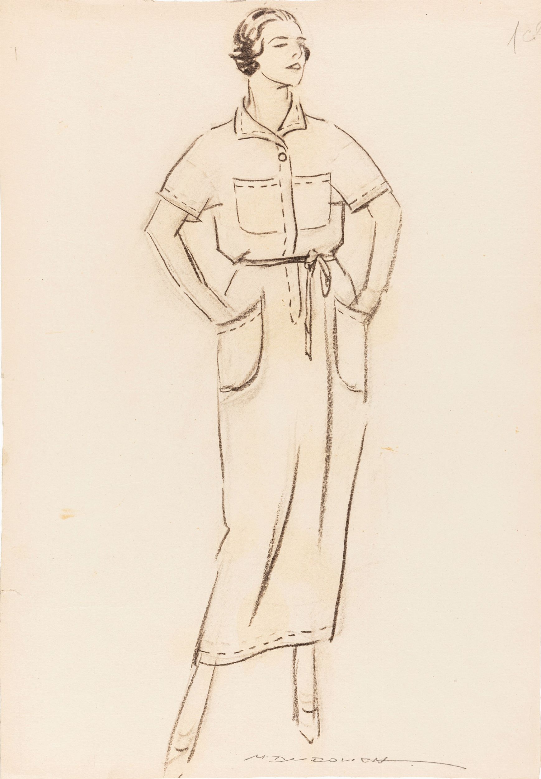 matita e carboncino su cartoncino, 32,5 x 48,5 cm 1919 Illustrazione originale realizzata da Dudovich tra il 1919 e il 1921 per le pagine de Il Resto del Carlino di Bologna dove i grandi magazzini La Rinascente promuovevano i propri capi di abbigliamento. Provenienza: collezione Mario Missiroli (direttore Il Resto del Carlino Bologna). Piccolo strappo al margine sinistro. Firmata.