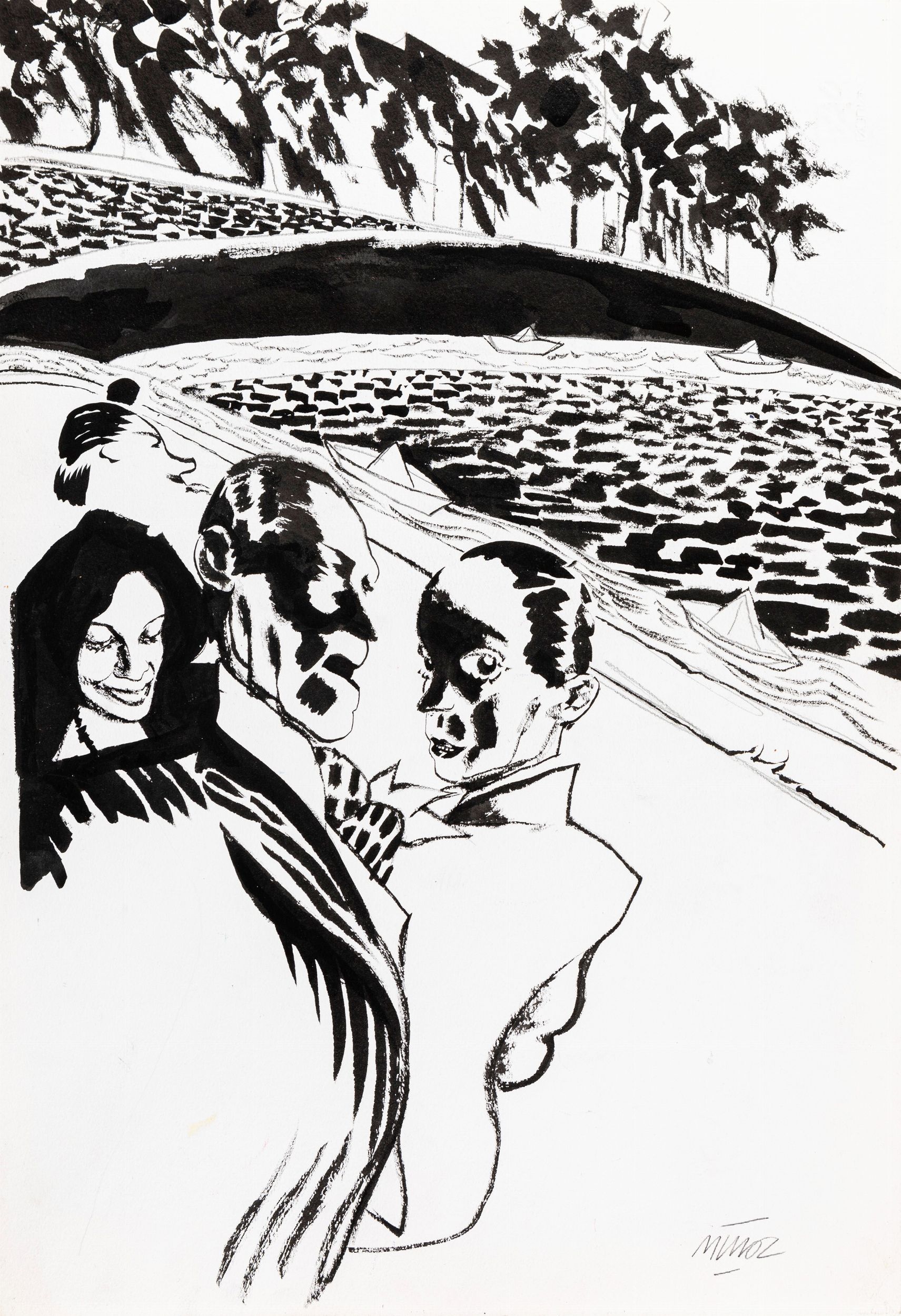 2003 Illustrazione originale realizzata da Muñoz per il volume L’Arte della Necessità, edito dalla Galleria Tricromia di Roma nel 2003. Firmata.