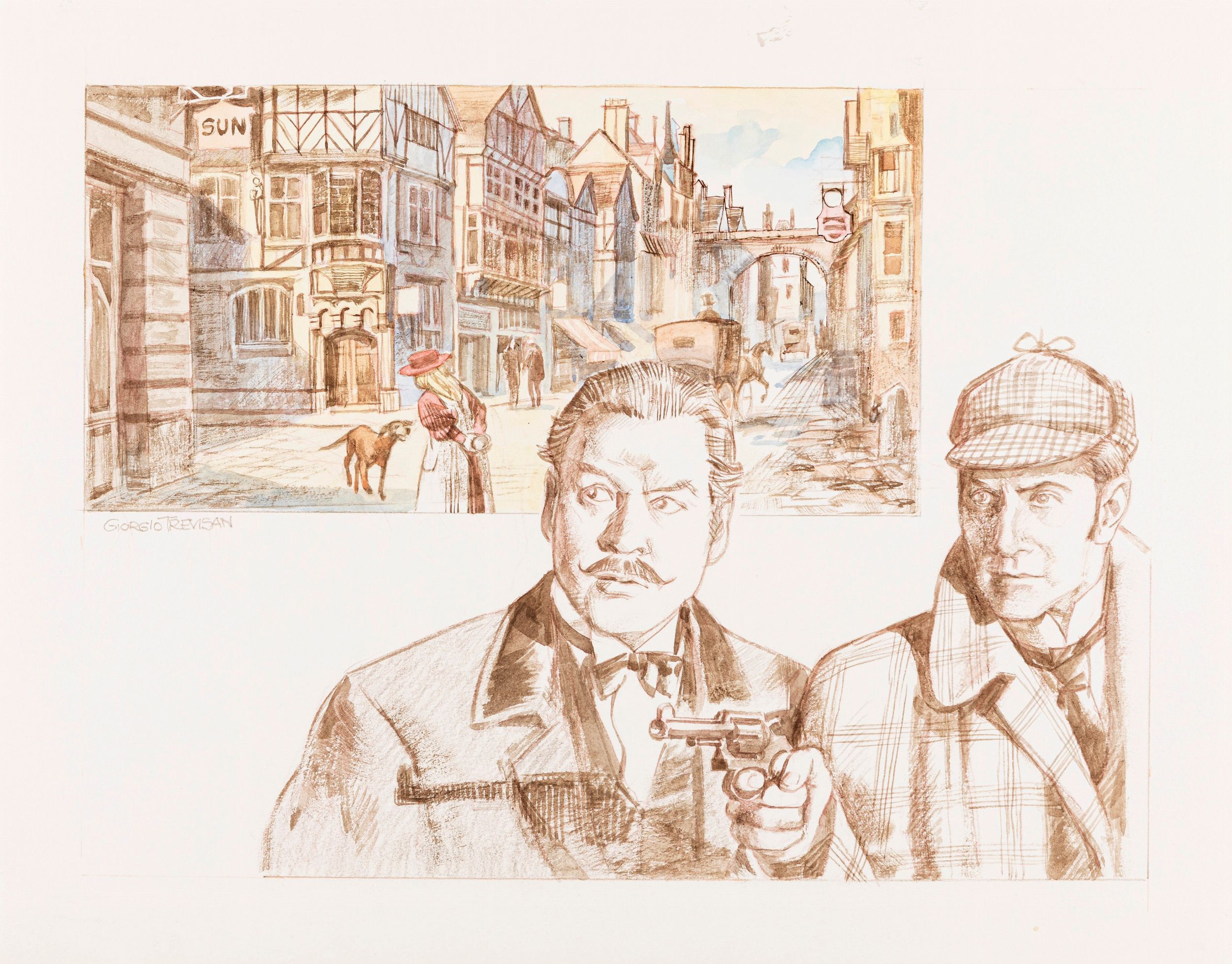 1986 Illustrazione originale realizzata da Trevisan per il suo celebre adattamento a fumetti dell’investigatore di Arthur Conan Doyle Le avventure di Sherlock Holmes, su sceneggiatura di Berardi. Opera recentemente pubblicata sul volume Sherlock Holmes nella collana I Maestri del Fumetto n. 29 dalla Mondadori nel 2009. Firmata.