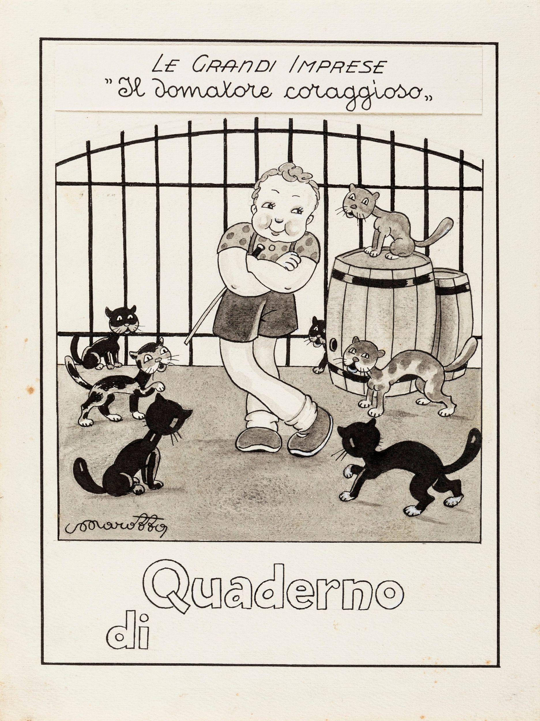 anni 40 Illustrazione originale realizzata da Marotta per un quaderno scolastico. Firmato.