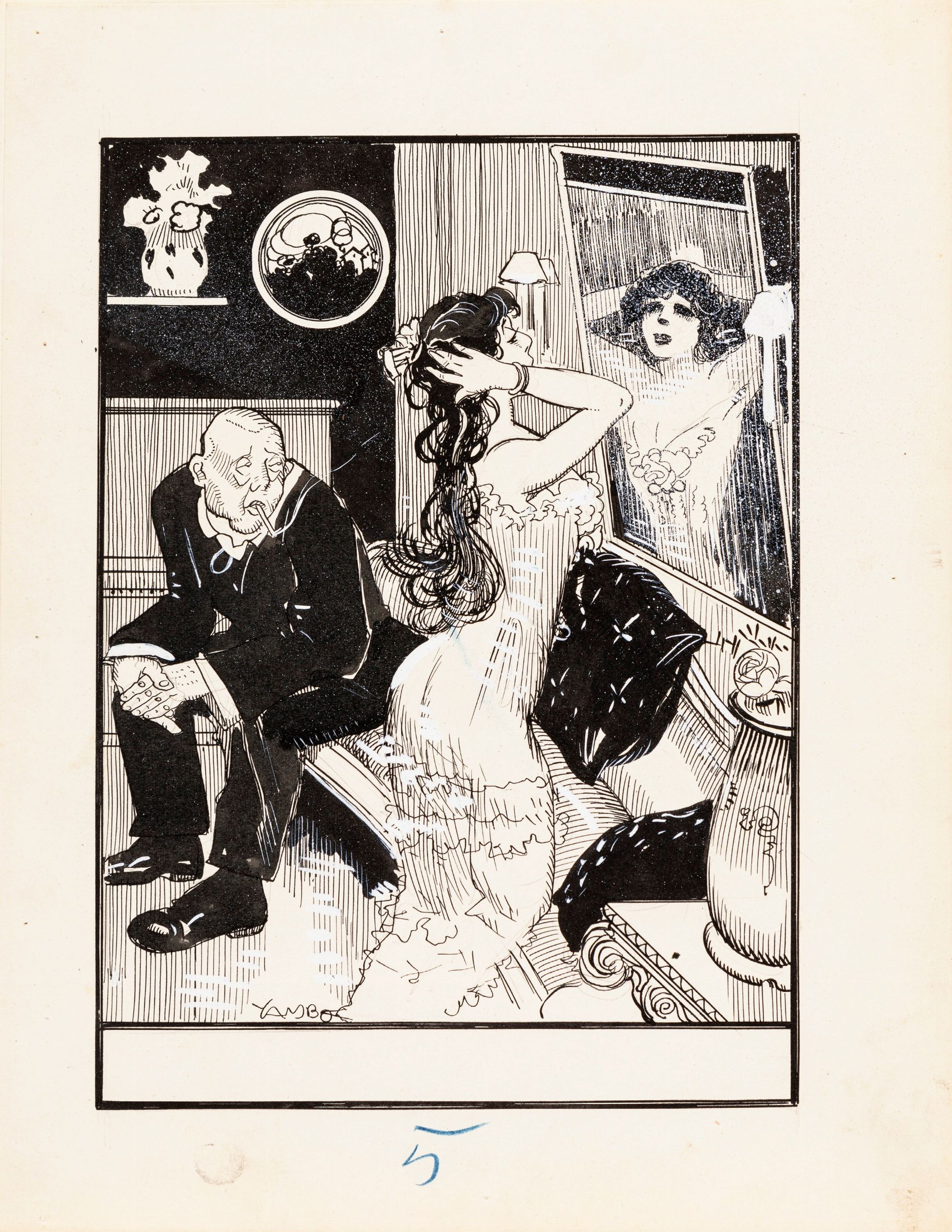 1920 Illustrazione originale realizzata da Yambo per un fascicolo de Le memorie di una Sciantosa, edito dalla Nerbini nel 1920. Firmata.