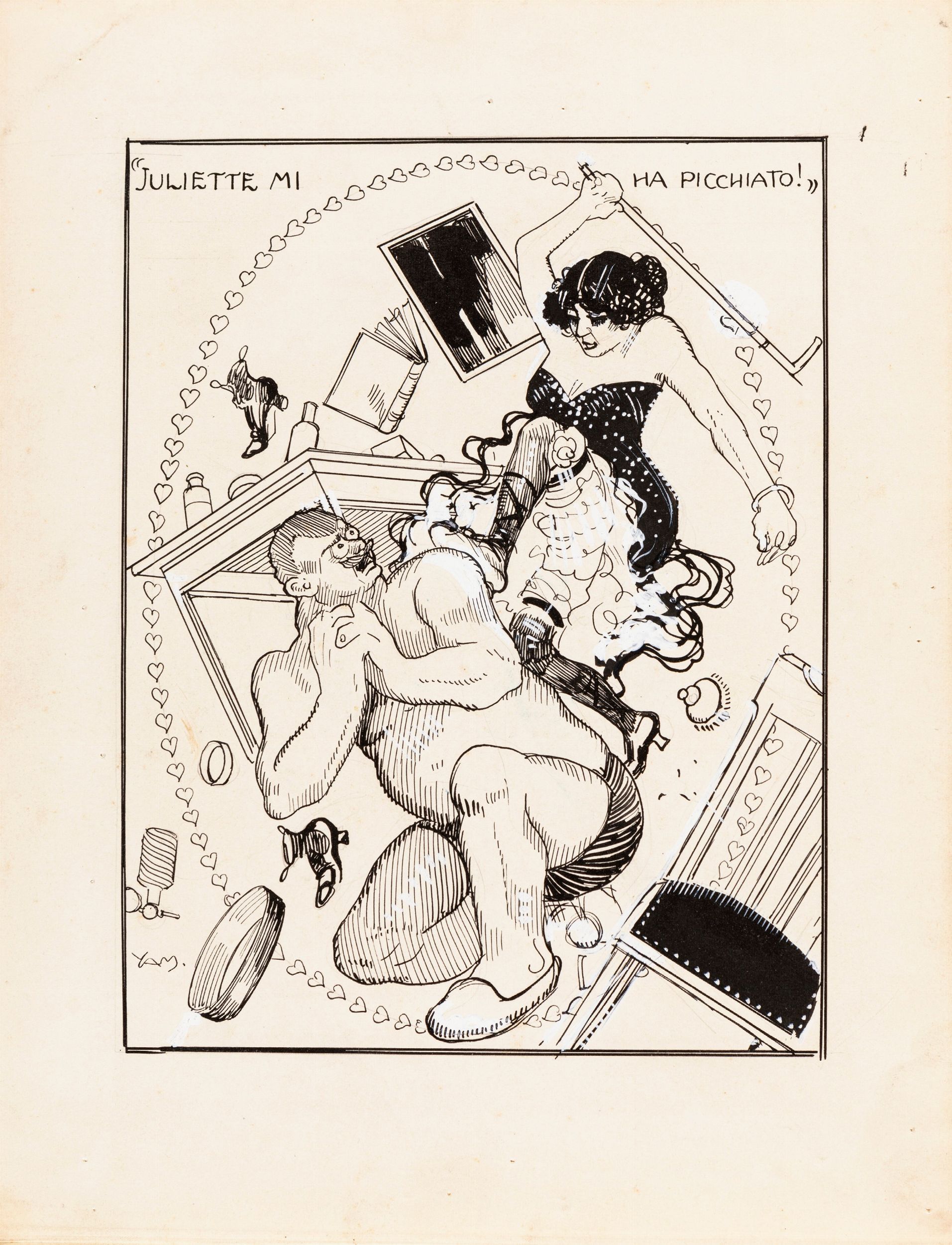1920 Illustrazione originale realizzata da Yambo per un fascicolo de Le memorie di una Sciantosa, edito dalla Nerbini nel 1920. Firmata.