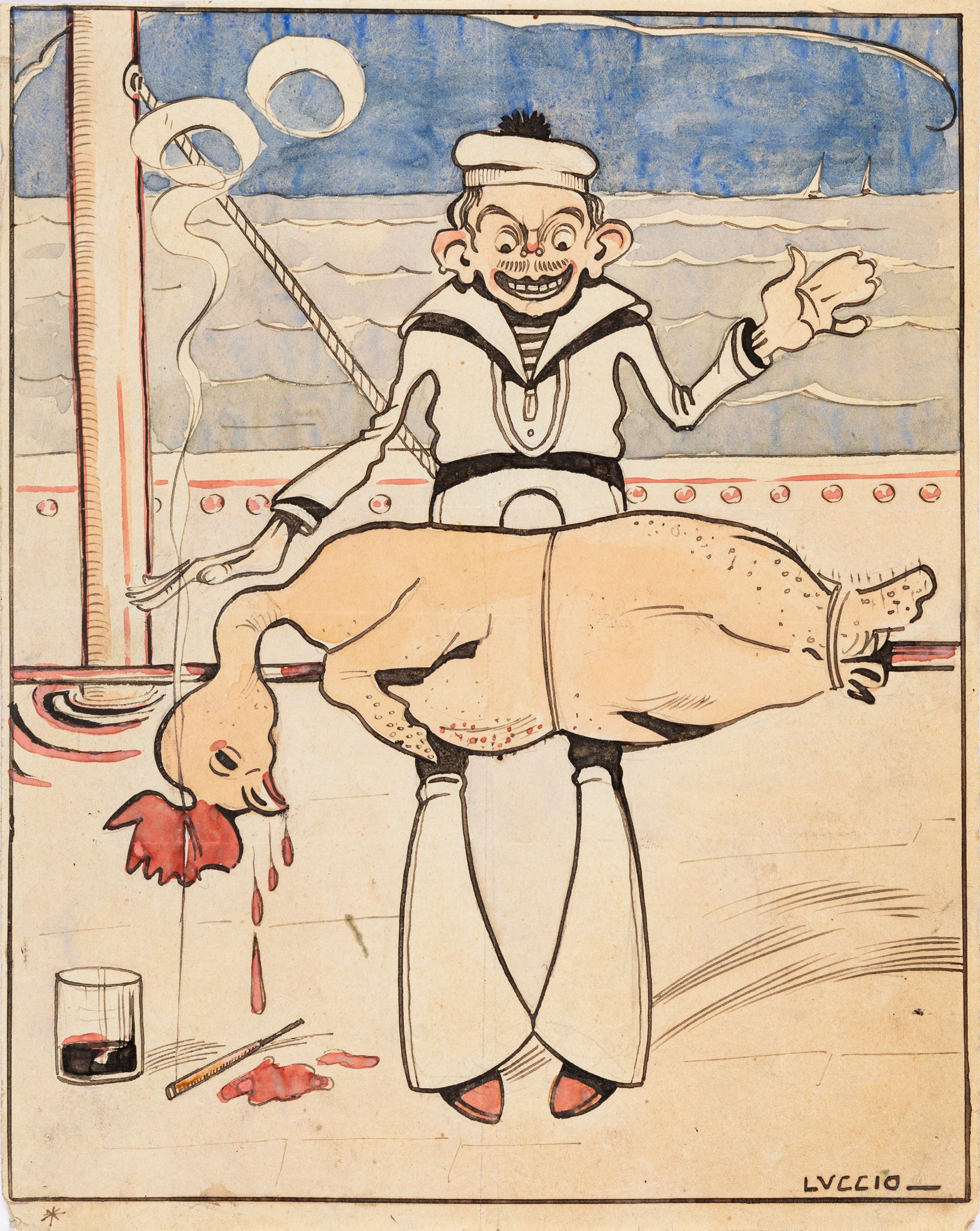 primi del 900 Illustrazione originale realizzata da Luccio durante i primi del '900 per il giornale satirico Il Pasquino. Lievi pieghe. Firmata.