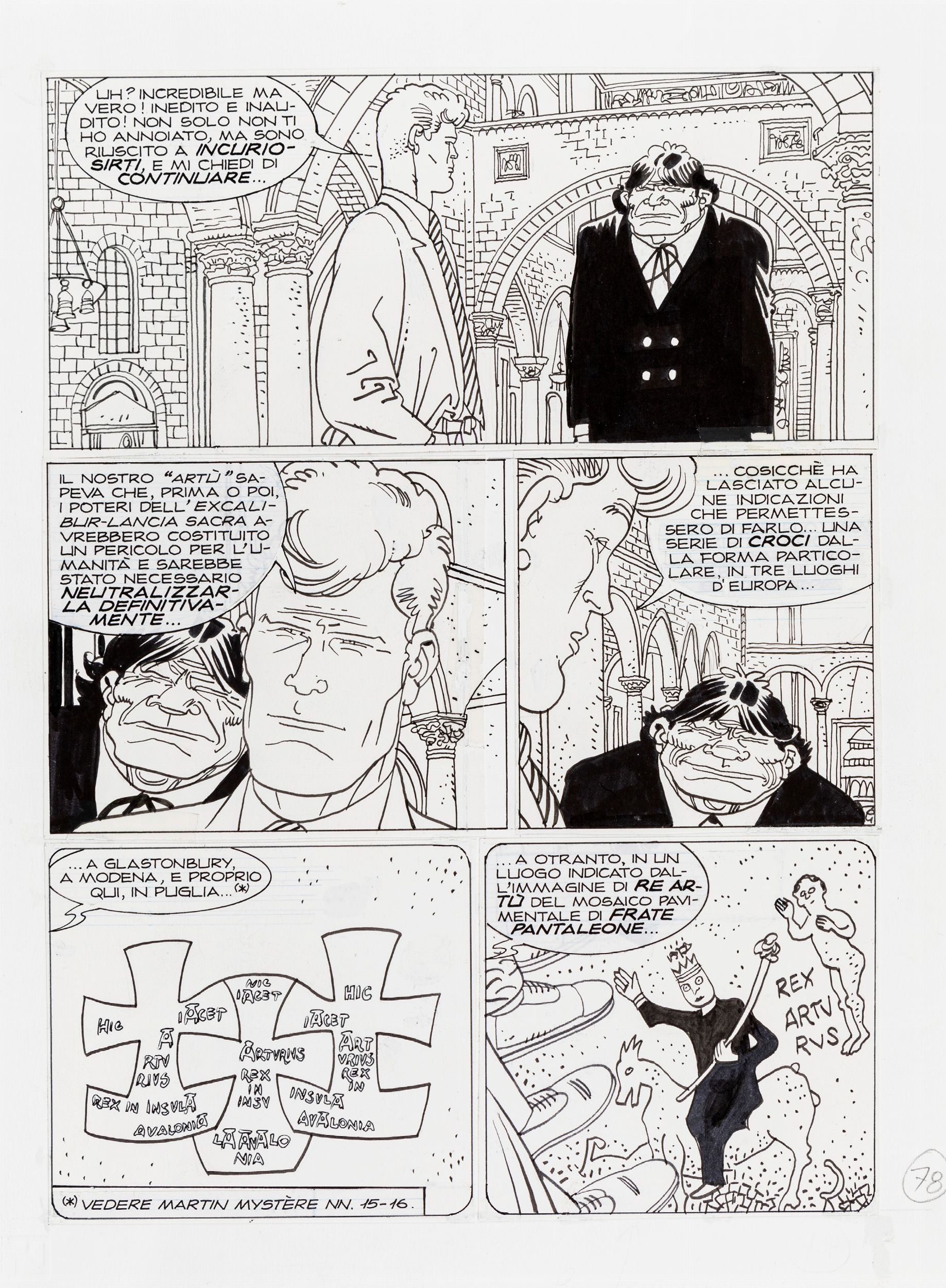1995 Lotto composto d 3 tavole originali realizzate da Alessandrini per Il segreto di San Nicola, edite su Martin Mystère Gigante n. 1 alle pagg. 29, 77 e 78 dalla Bonelli nel 1995.