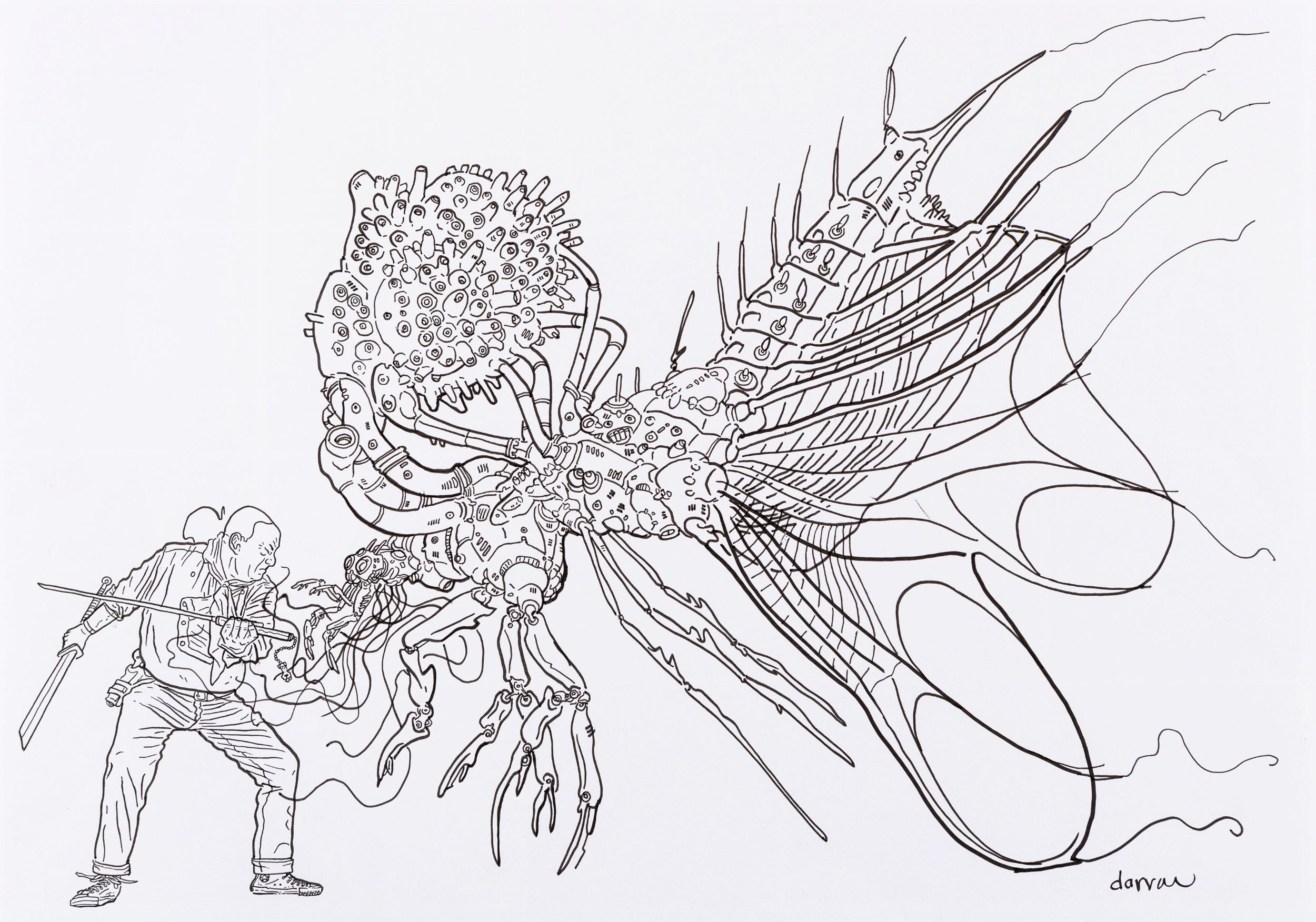 anni 2000 Illustrazione originale realizzata da Darrow per The Shaolin Cowboy, serie che gli valse il premio Eisner nel 2006. Firmata.