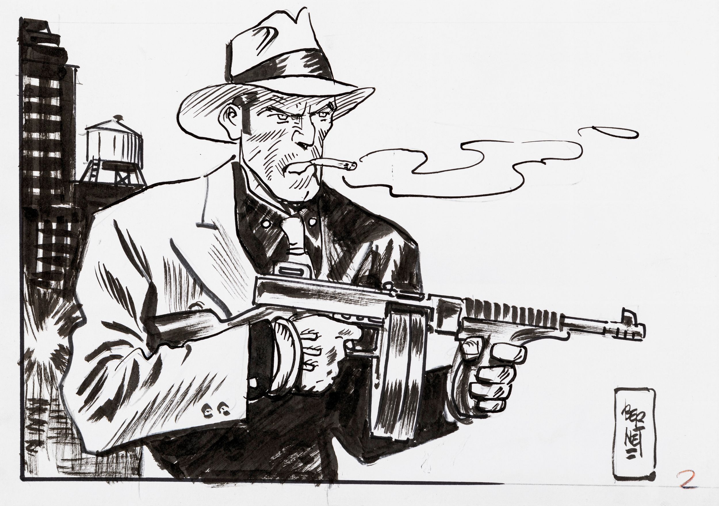 matita e china su cartoncino, 30 x 21 cm anni 2000 Illustrazione originale realizzata da Bernet per il suo Torpedo. Antieroe per antonomasia, Torpedo è protagonista di uno dei fumetti noir più amati e celebrati dal pubblico di tutto il mondo che rese l‘artista spagnolo il maestro indiscusso di questo genere. Firmata.