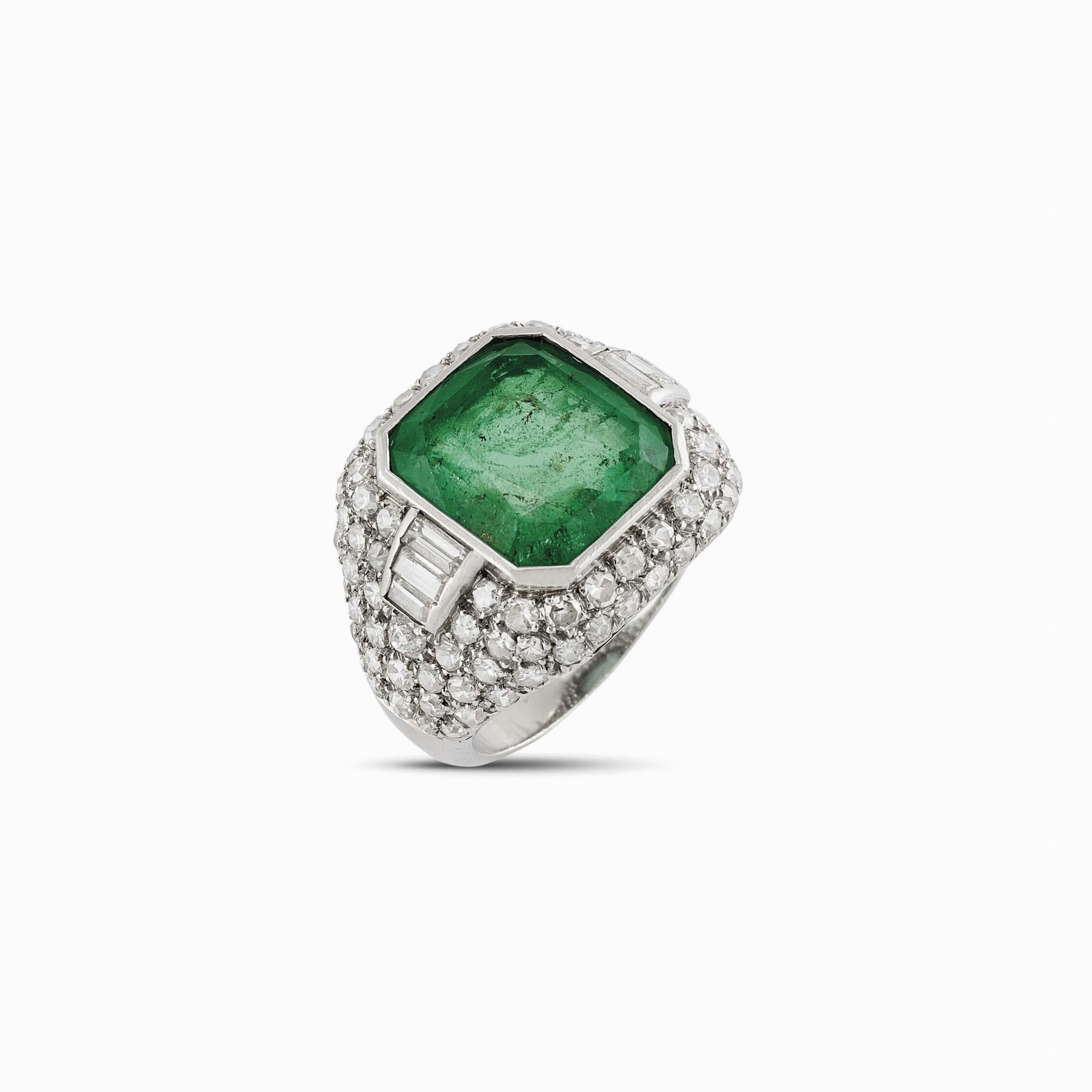 ANELLO A FASCIA CON SMERALDO E DIAMANTI