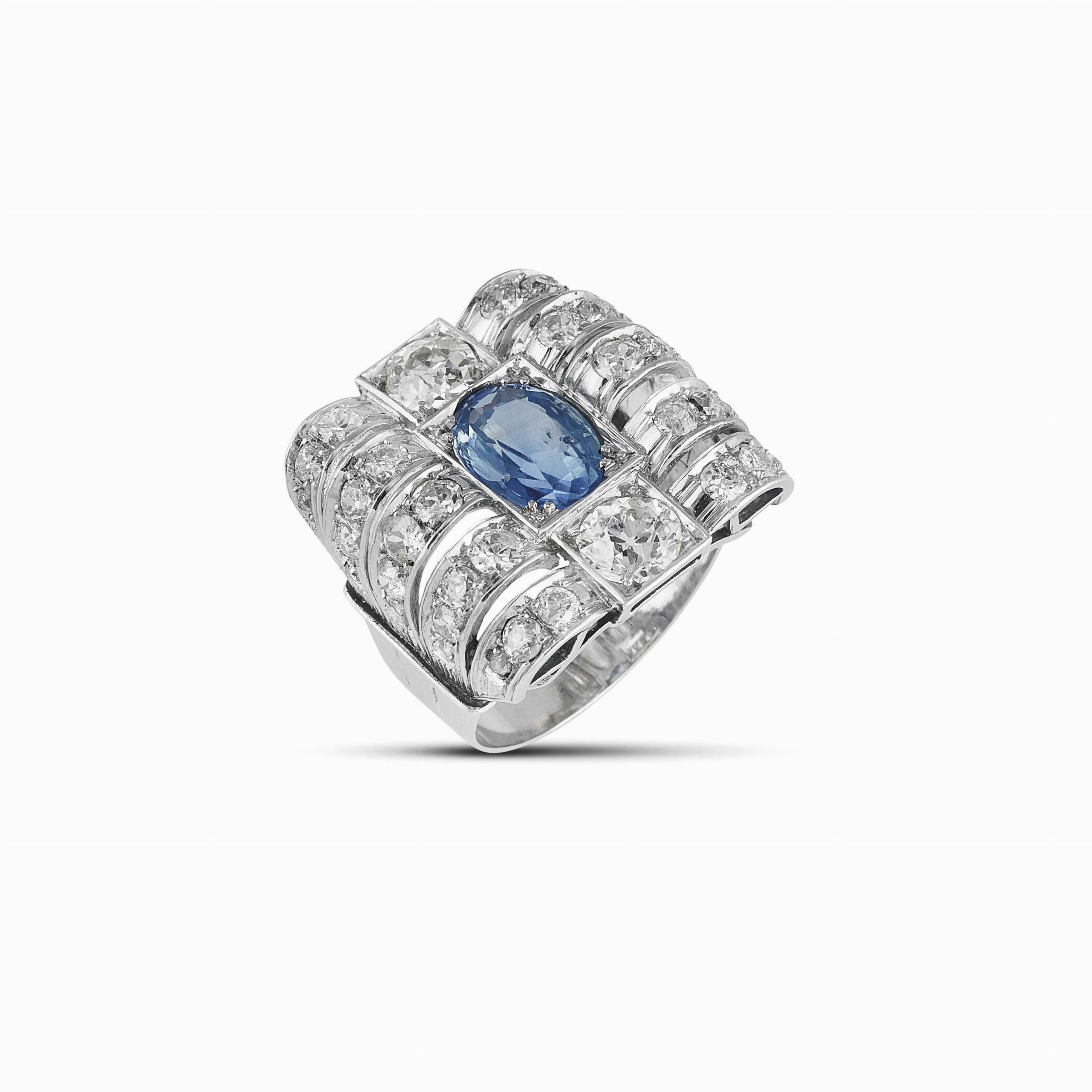 ANELLO AD AMPIA FASCIA CON ZAFFIRO E DIAMANTI