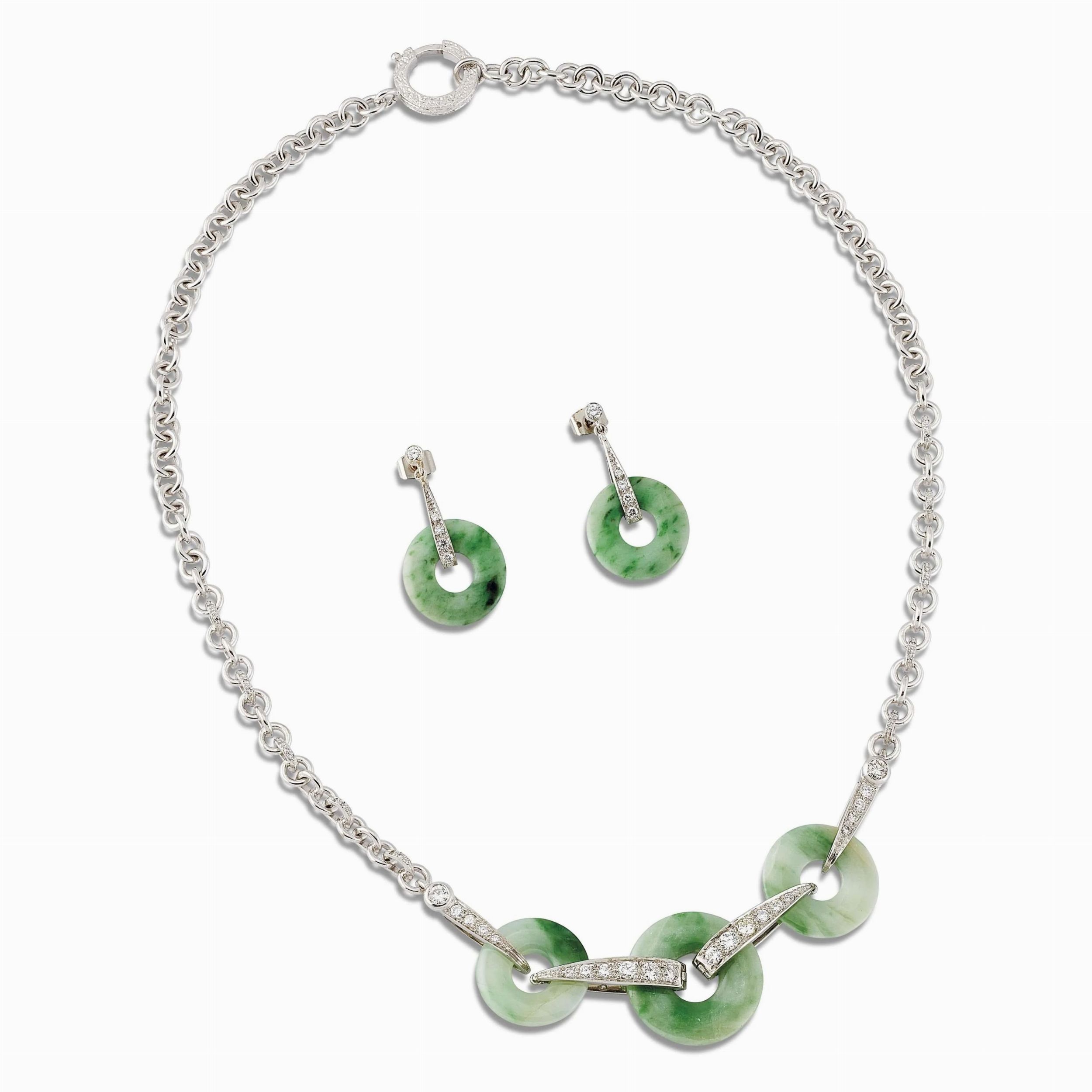 DEMI PARURE CON DISCHI IN GIADA E DIAMANTI