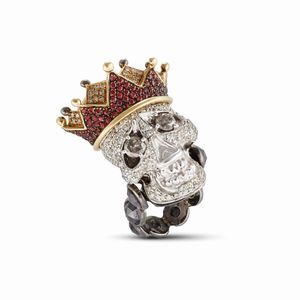 BERNARD DELETTREZ ANELLO A FORMA DI TESCHIO in oro giallo, bianco 18kt e oro brunito 14kt, realizzato [..]