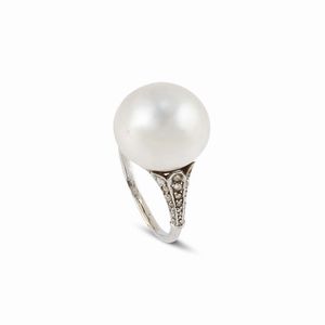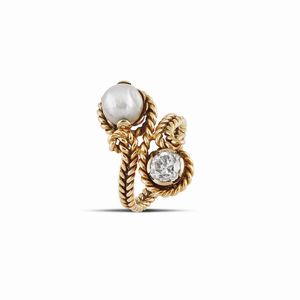 ANELLO CON PERLA NATURALE E DIAMANTI