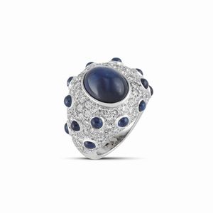 ANELLO A CUPOLA CON ZAFFIRI E DIAMANTI