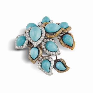 SPILLA A FORMA DI TRALCIO CON PASTA DI TURCHESE E DIAMANTI