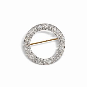BUCCELLATI PICCOLA SPILLA A FORMA DI CARDO in oro giallo satinato 18kt e argento, firmata M.Buccellati, [..]