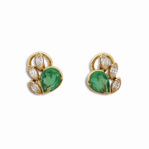 PAIO DI ORECCHINI A TRALCI CON SMERALDI E DIAMANTI