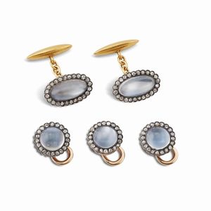 BUCCELLATI PAIO DI GEMELLI in oro giallo satinato 18kt, firmati Fed. Buccellati, punzoni 750 e del fabbricante, [..]