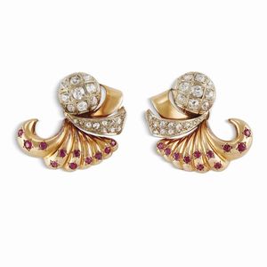LALAOUNIS PAIO DI ORECCHINI A FORMA DI CONCHIGLIA in oro giallo 18kt, di cui uno firmato GREECE, punzone [..]