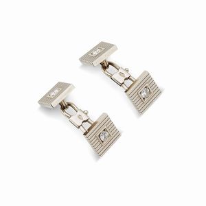 BUCCELLATI PAIO DI GEMELLI in oro giallo satinato 18kt, firmati Fed. Buccellati, punzoni 750 e del fabbricante, [..]