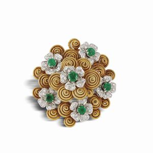 TRE BRACCIALI RIGIDI CON RUBINI SMERALDI E DIAMANTI in oro giallo 18kt, di cui uno impreziosito da una [..]