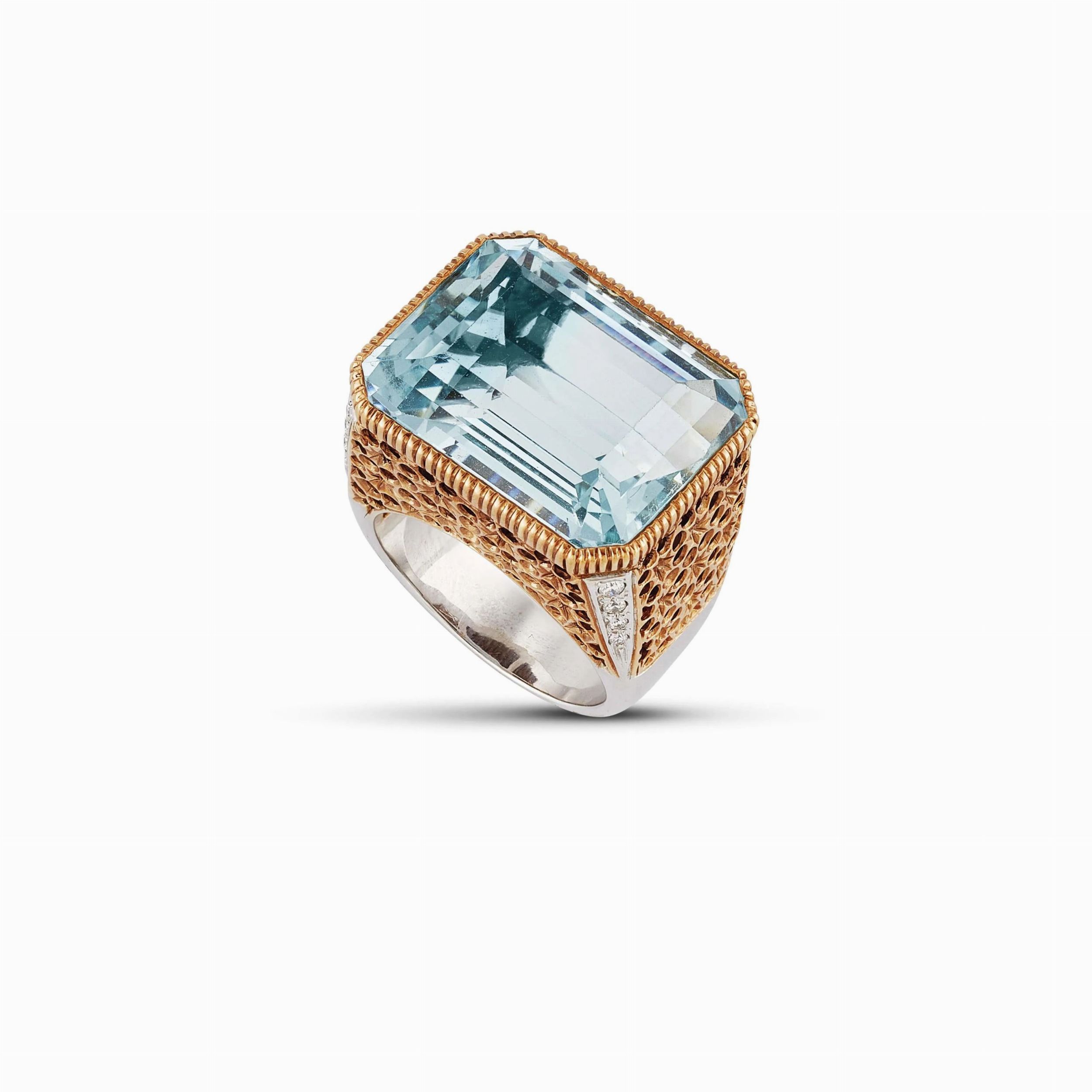 GRANDE ANELLO CON ACQUAMARINA E DIAMANTI