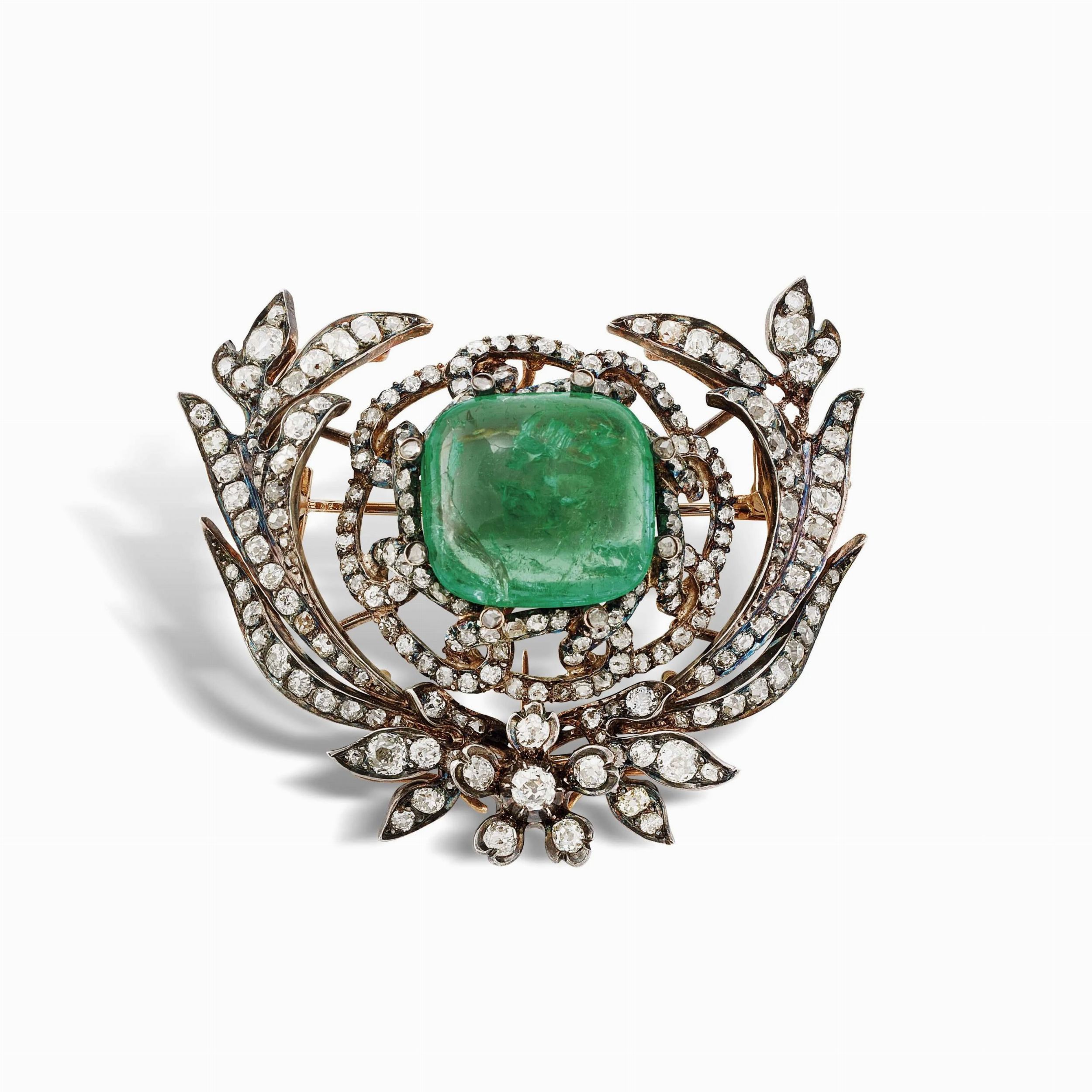 GRANDE SPILLA A TRALCIO FIORITO CON SMERALDO E DIAMANTI