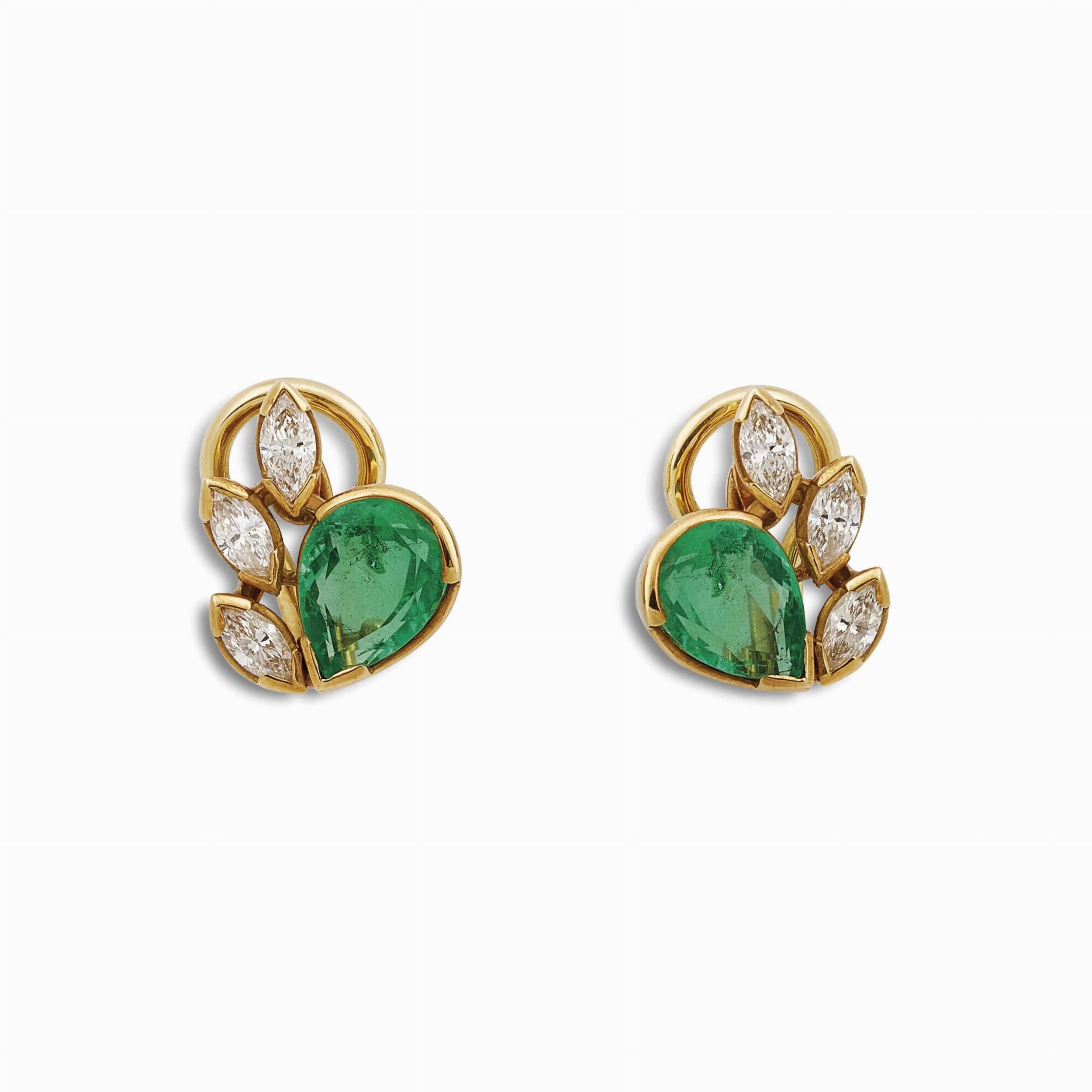 PAIO DI ORECCHINI A TRALCI CON SMERALDI E DIAMANTI