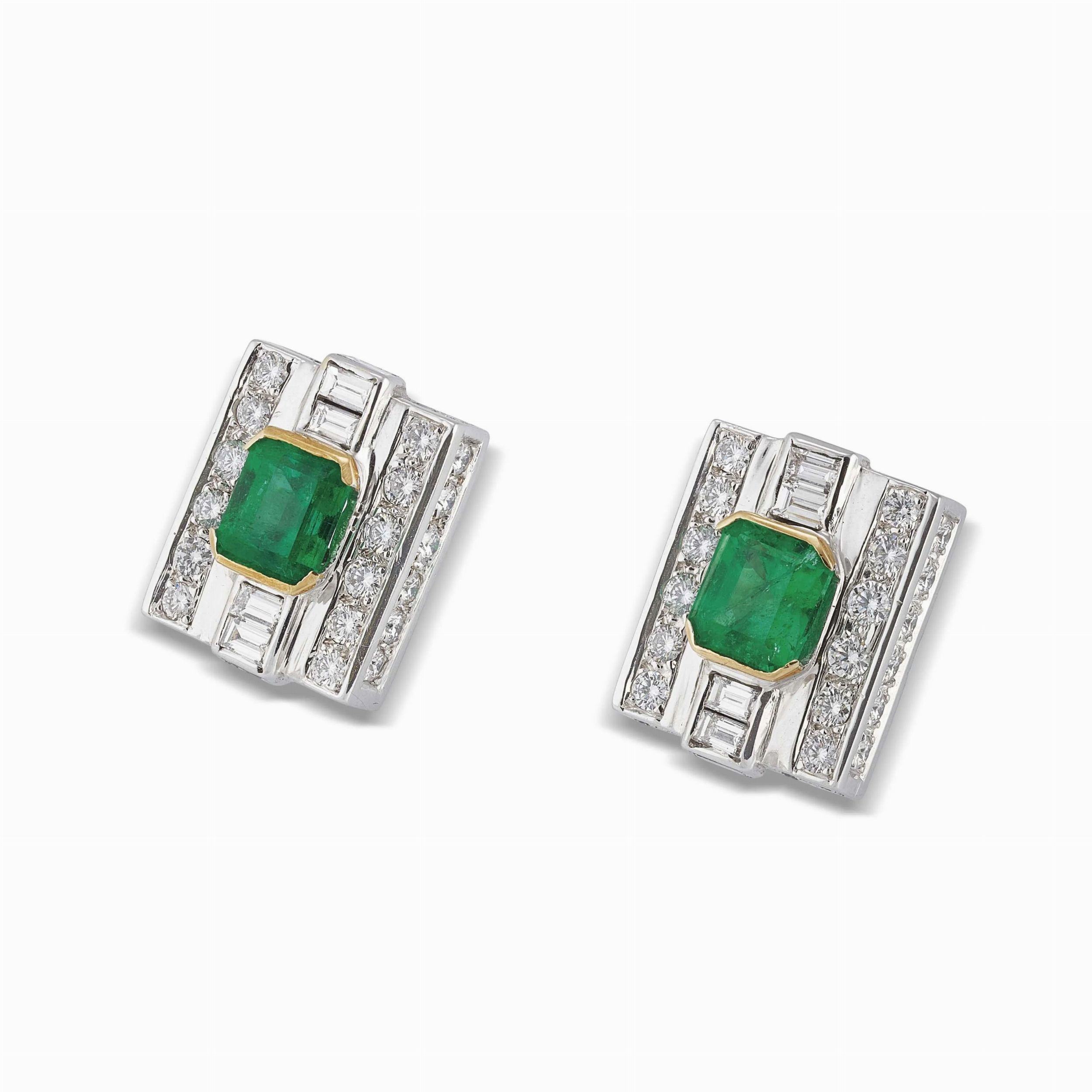 PAIO DI ORECCHINI CON SMERALDI E DIAMANTI