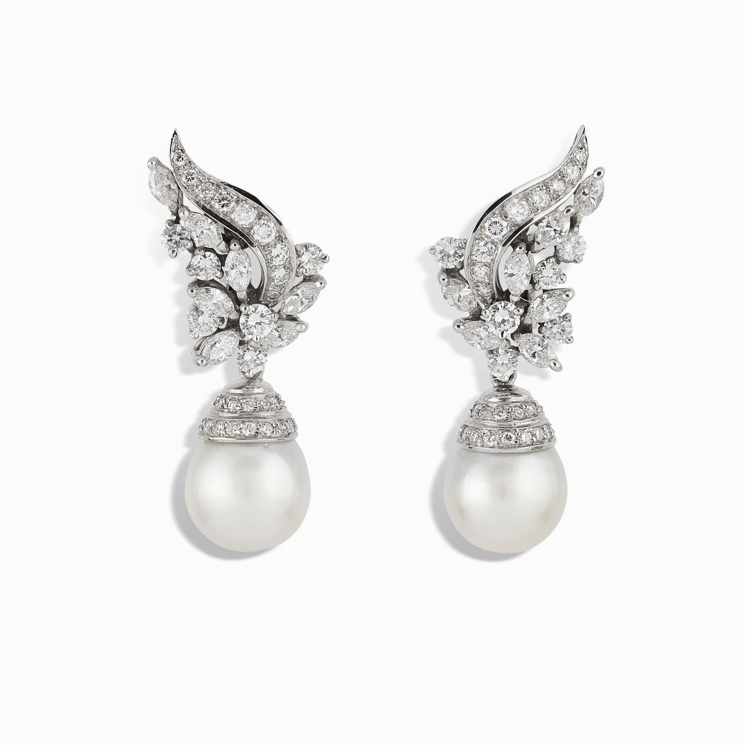 PAIO DI ORECCHINI PENDENTI CON PERLE SOUTH SEA E DIAMANTI